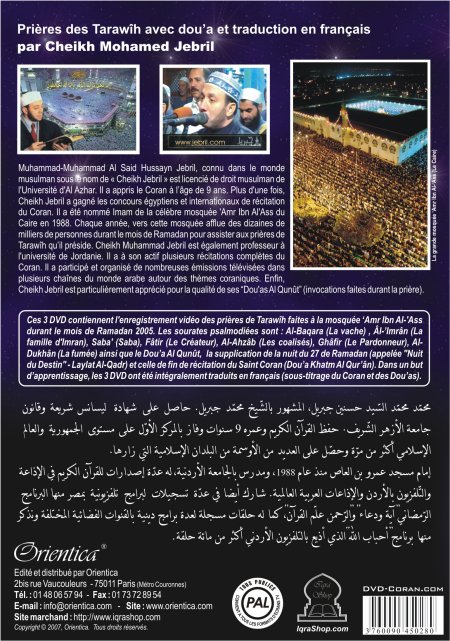 Prières des Tarawîh avec Dou’a - Cheikh Jebril (Mohammed Jibril) - Intégralement traduit en français (3 DVD) - REF. 4615 (20.00 €)