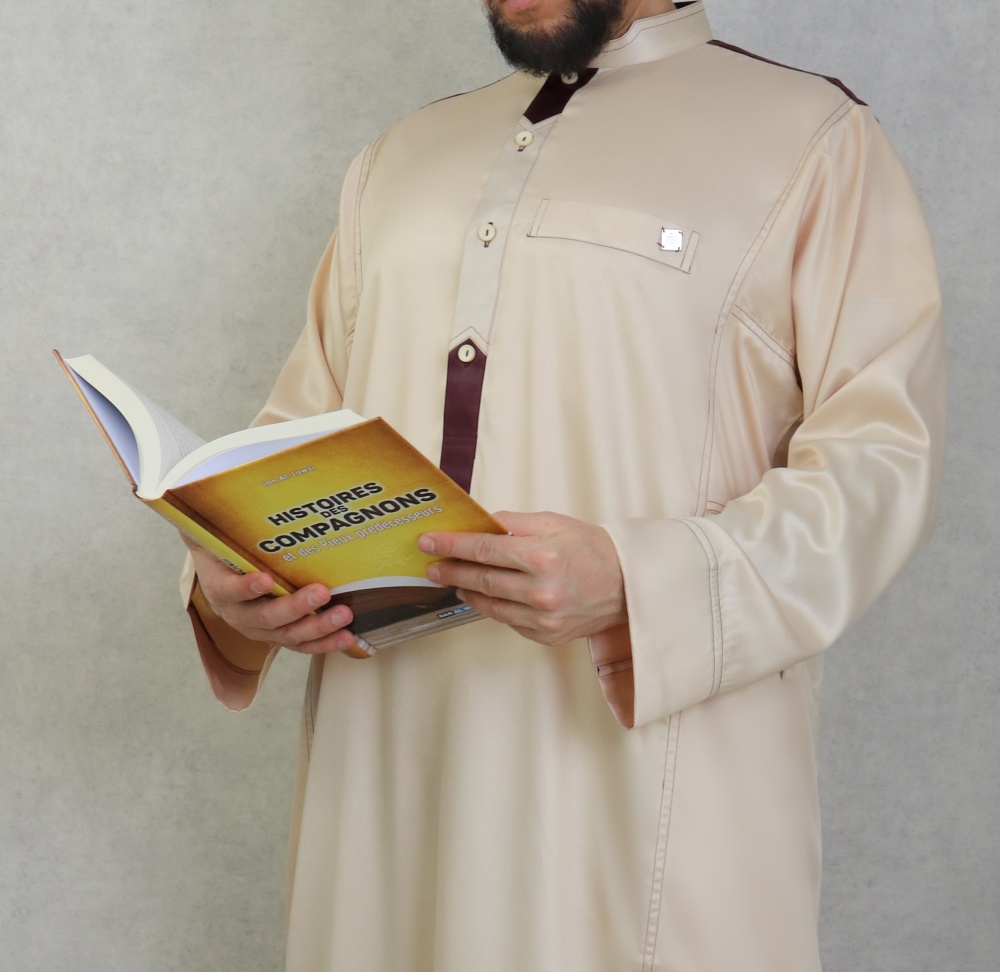 Qamis de luxe pour homme - Tissu qualité supérieure satiné - Couleur camel