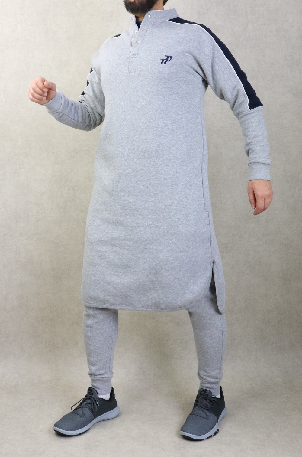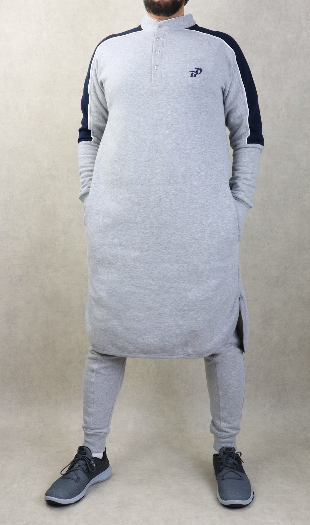 Qamis court Premium bicolore coton molletonné zippé de Marque Best Ummah - Couleur Gris clair chiné et bleu marine bleu marine - REF. 36705 (39.90 €)