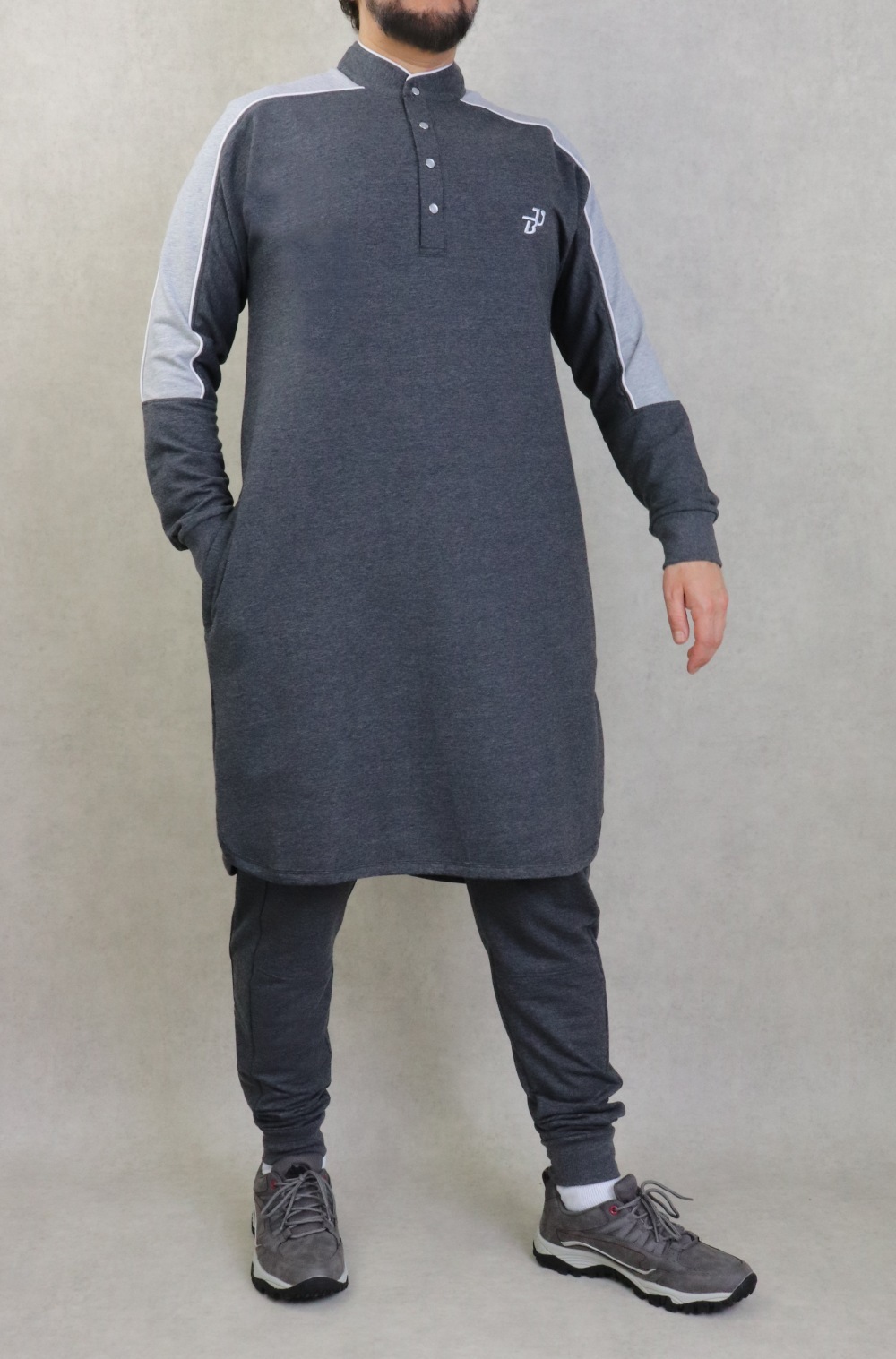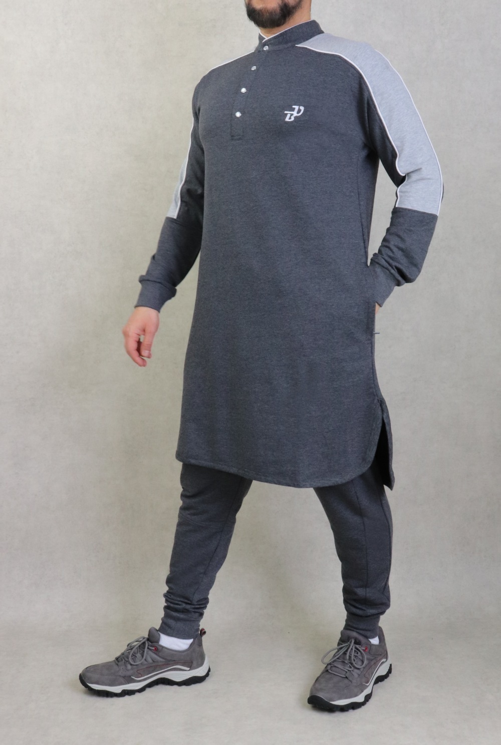 Ce qamis court peut s'adapter avec tous les pantalons gris chinés ou d'autres couleurs de la marque Best Ummah.