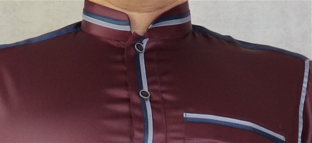 Qamis originale de couleur grenat avec bandes fines de couleur gris et noir (comme sur la photo).