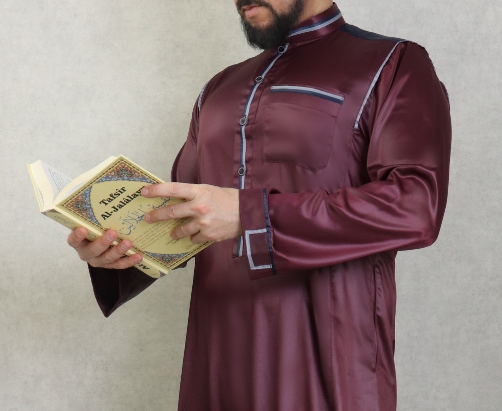 Qamis de luxe tissu satine pour hommes - Couleur grenat