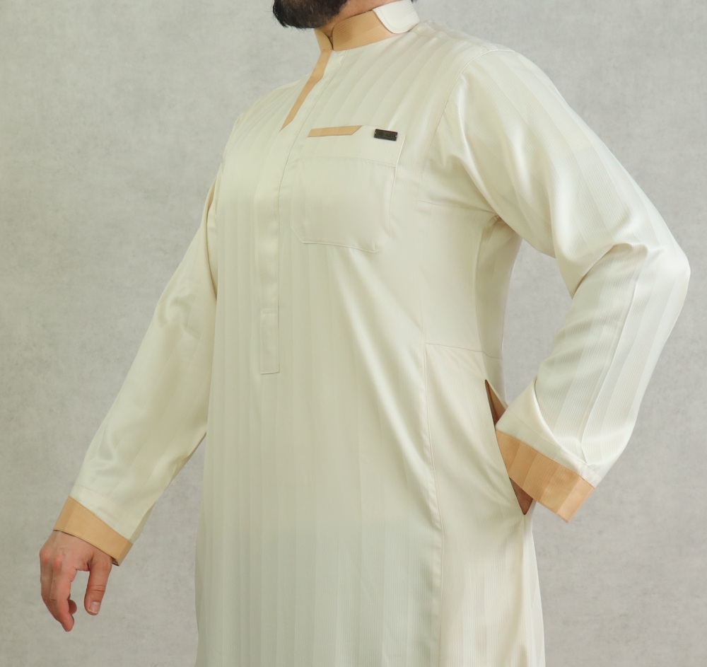 Qamis traditionnel élégant de qualité supérieure couleur blanc cassé et camel - REF. 32204 (49.00 €)