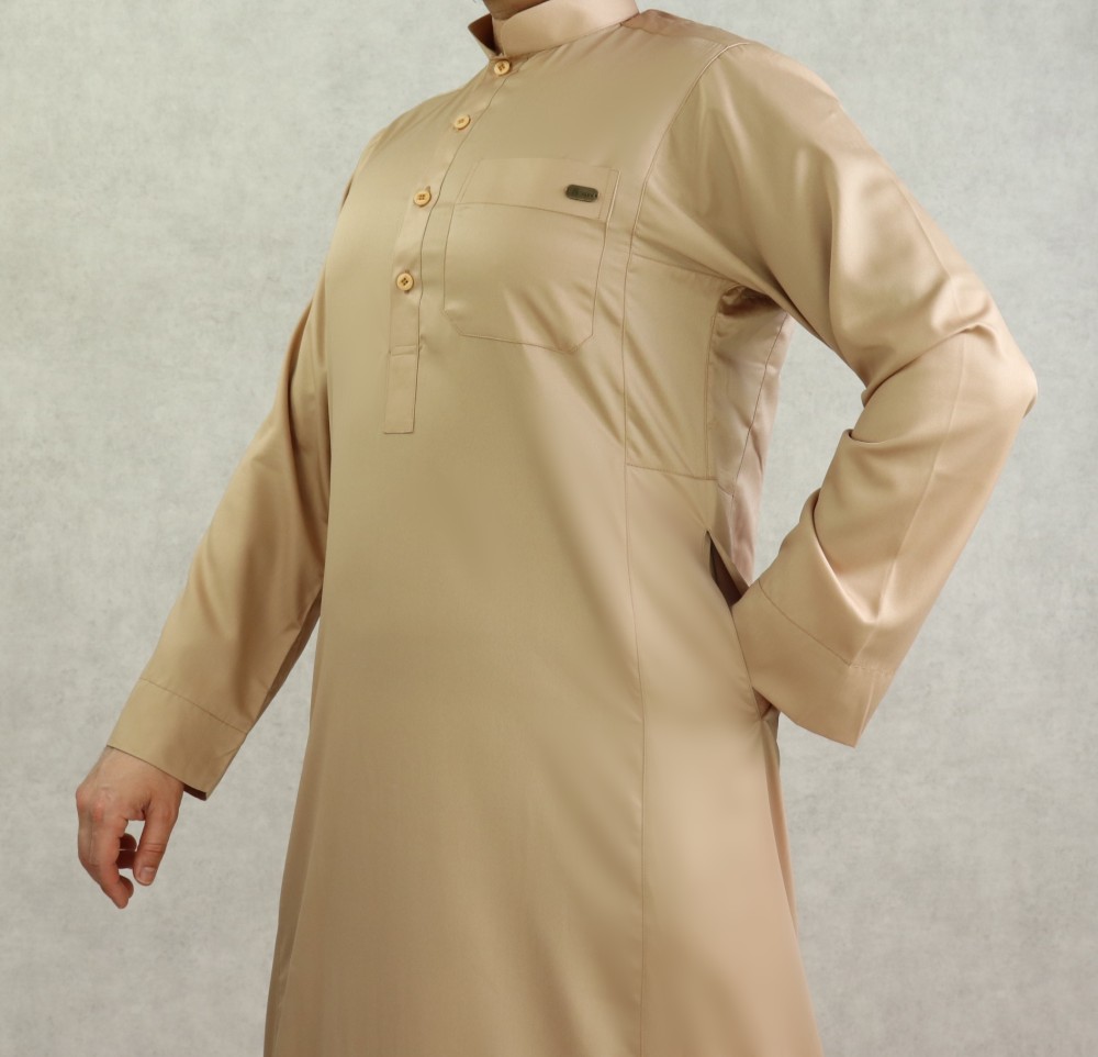 Qamis homme classique de qualite superieure avec tissu legerement satine couleur beige