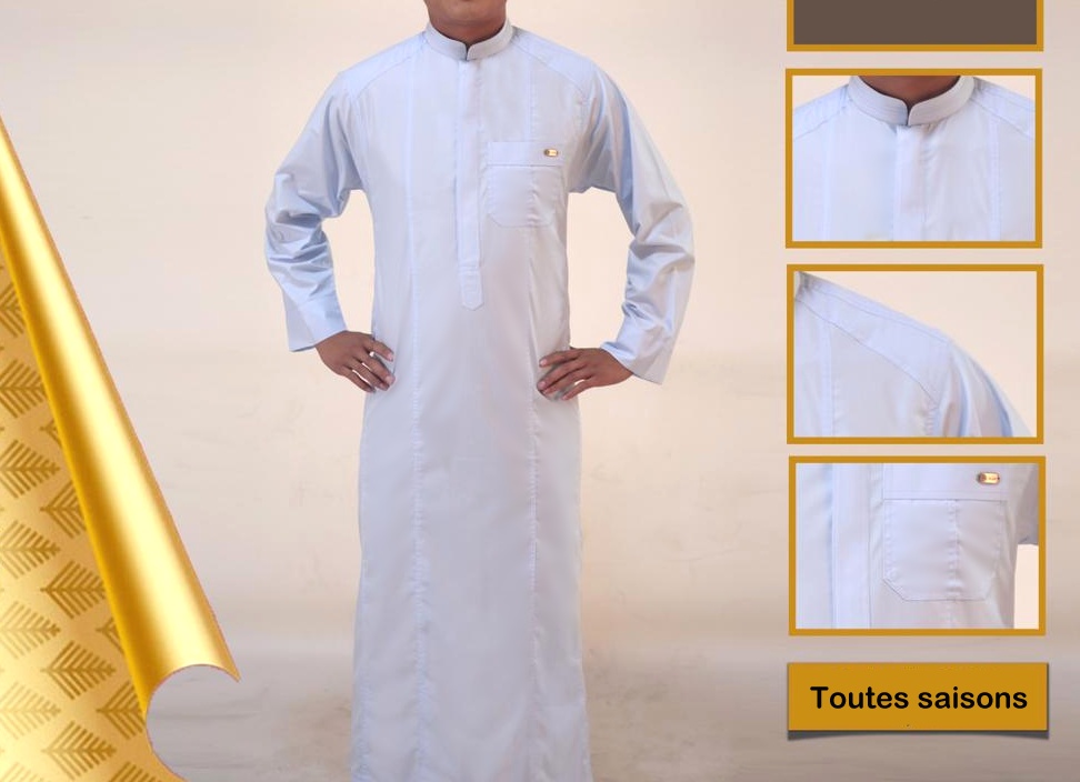 Qamis de couleur blanc cassé tirant légèrement vers le bleu.