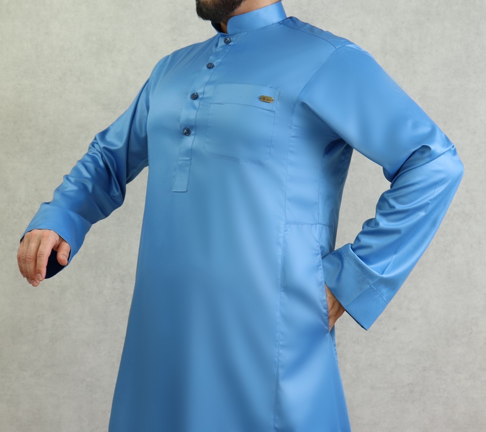 Qamis long manches longues fermeture boutons au niveau de la poitrine. Tissu fluide et très agréable de qualité supérieure, toutes saisons. Très bonnes coutures et finitions. Poche au niveau de la poitrine et deux grandes poches latérales avec sous-poches internes (pour clés ou petits objets).