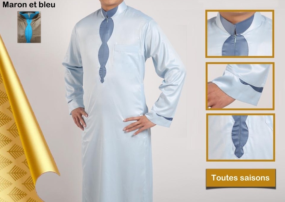 Qamis homme de qualité supérieure couleur "Marron et bleu" Vetement & Accessoire