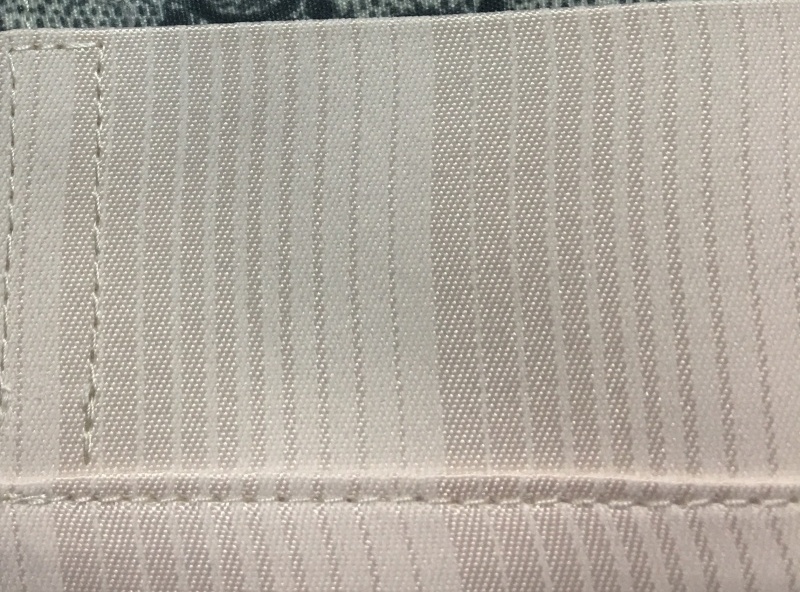 Qamis original de couleur beige avec poche stylée. Tissu satiné avec rayures discrètes. Boutons beige transparents décorés...