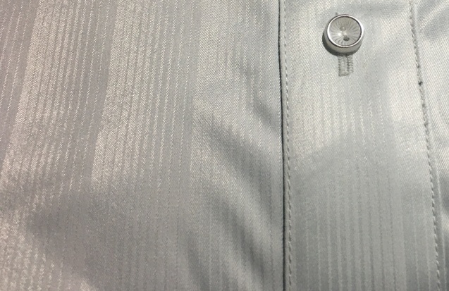Qamis original de couleur gris clair avec poche stylée stylé. Tissu satiné avec rayures discrètes. Boutons blanc avec bordure argentée...