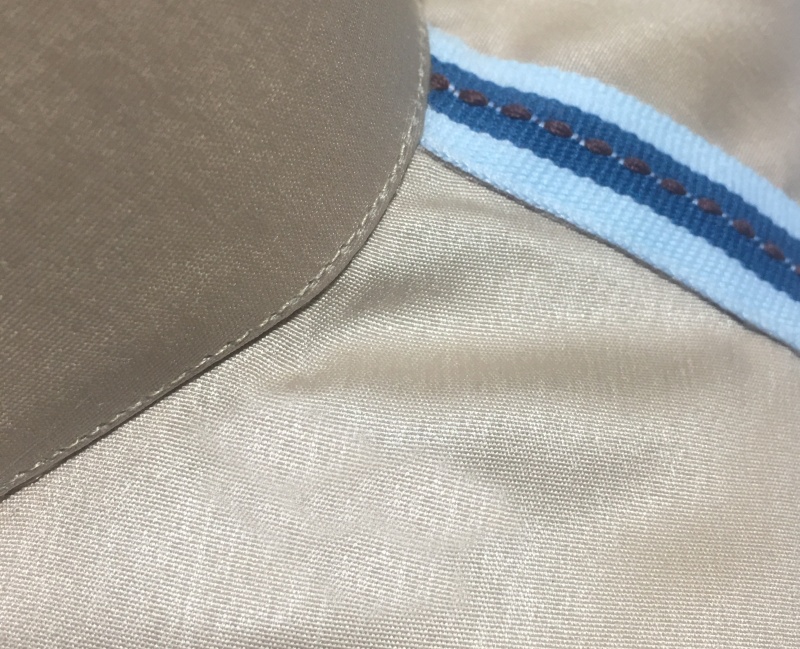 Qamis printemps-été, manches courtes, de couleur beige avec bandes bleues au niveau des épaules.