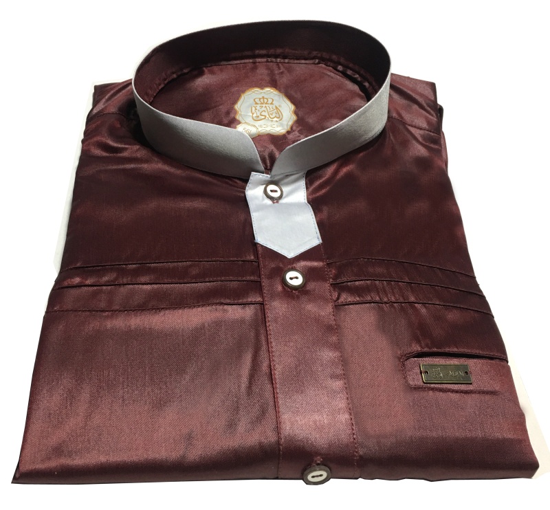 Qamis homme haut de gamme de couleur grenat et gris (tissu satiné) Vetement & Accessoire