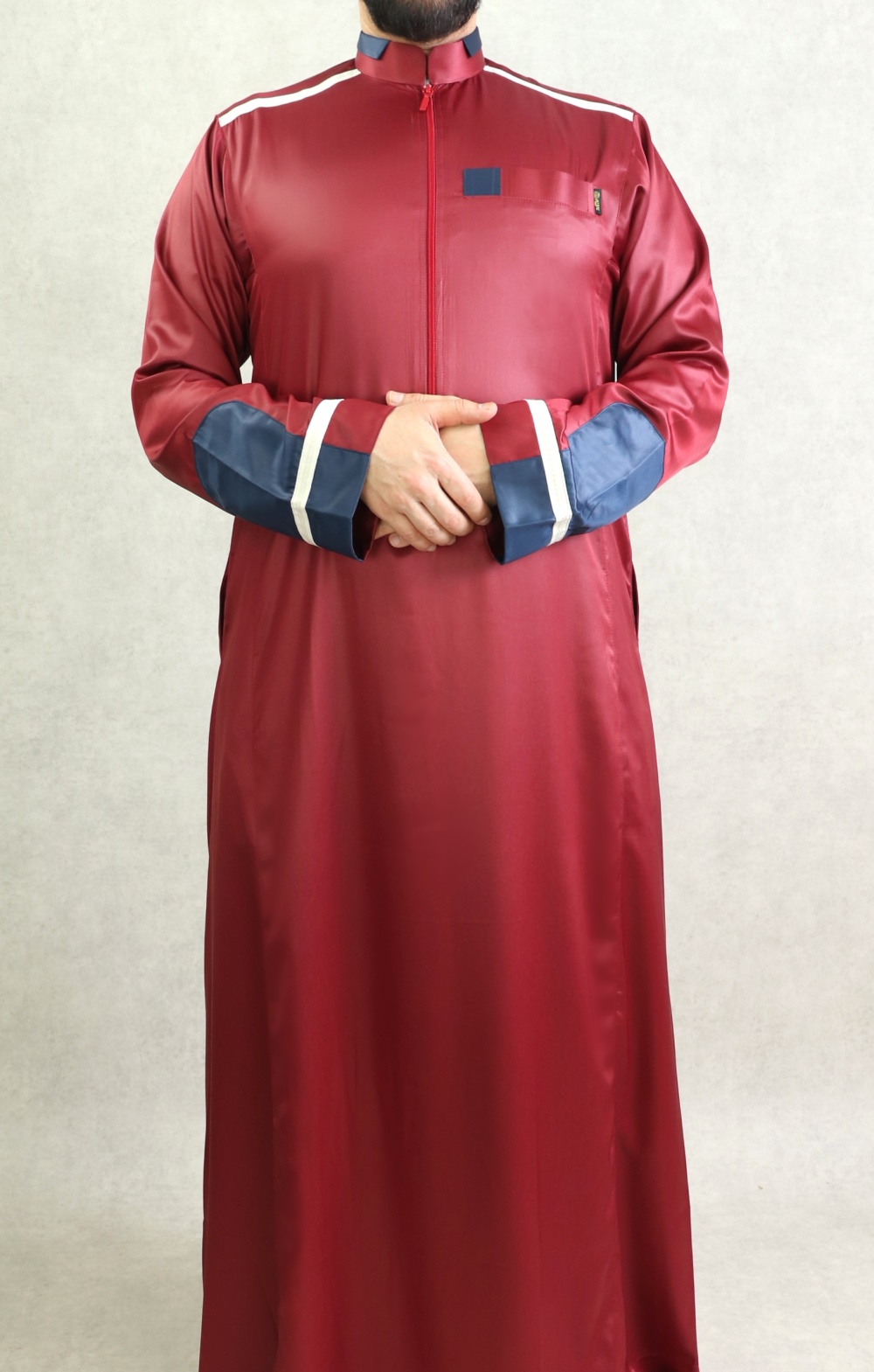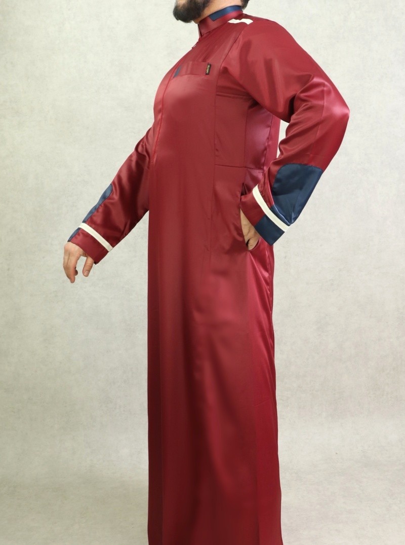 Qamis homme de qualité supérieure couleur bordeaux avec poche stylée grise (Marque Al-Bai) - REF. 31897 (45.00 €)