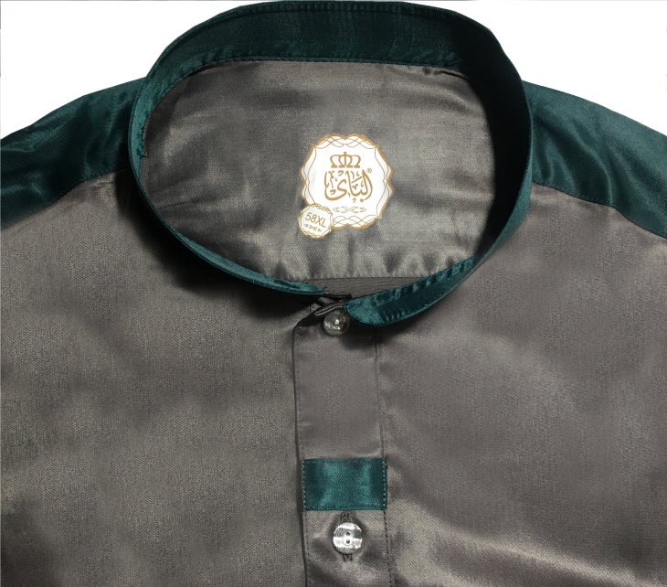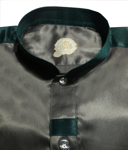 Qamis satine moderne de luxe couleur brun et vert col mao