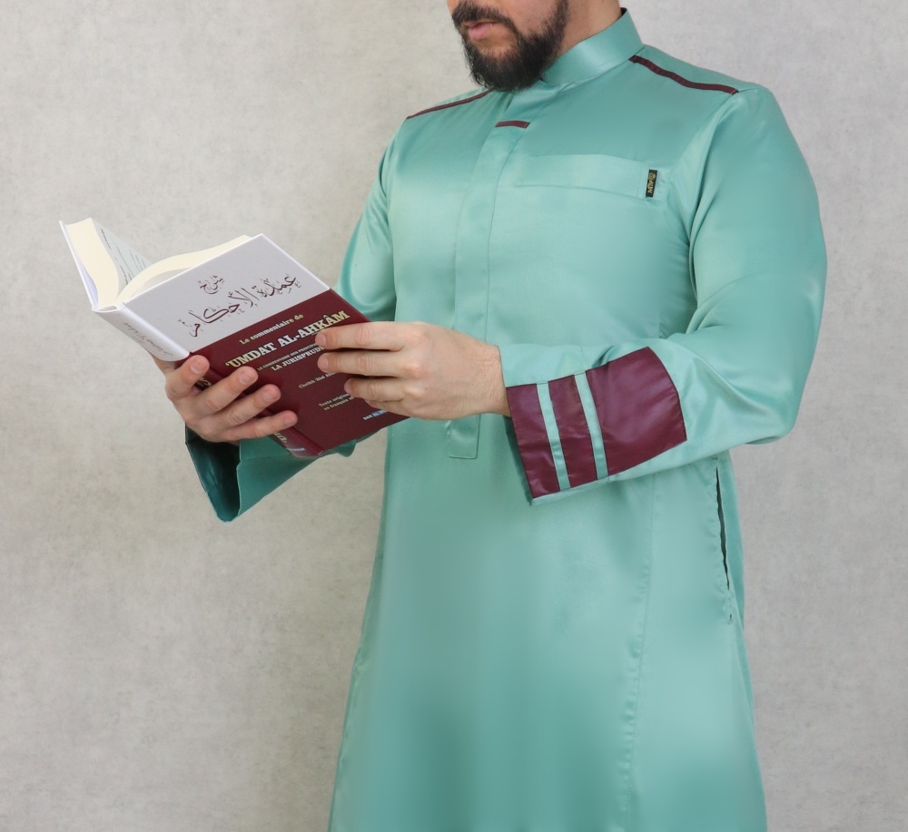 Qamis satiné moderne de luxe couleur vert menthe et prune Vetement & Accessoire