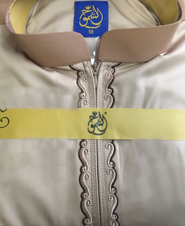 Qamis traditionnel élégant de qualité supérieure couleur blanc cassé et camel - REF. 32204 (49.00 €)