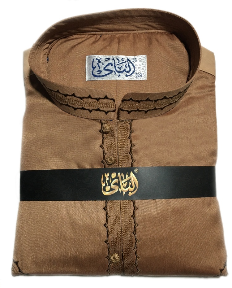 Qamis traditionnel homme brodé haut de gamme de couleur marron (tissu satiné) Vetement & Accessoire