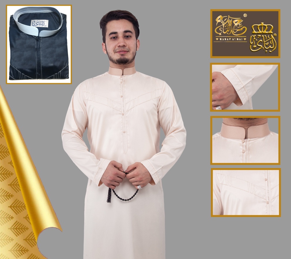 Qamis traditionnel élégant de qualité supérieure tissu satiné pour homme - Couleur beige - REF. 35386 (49.00 €)