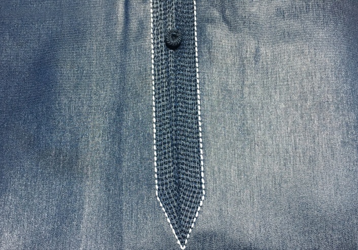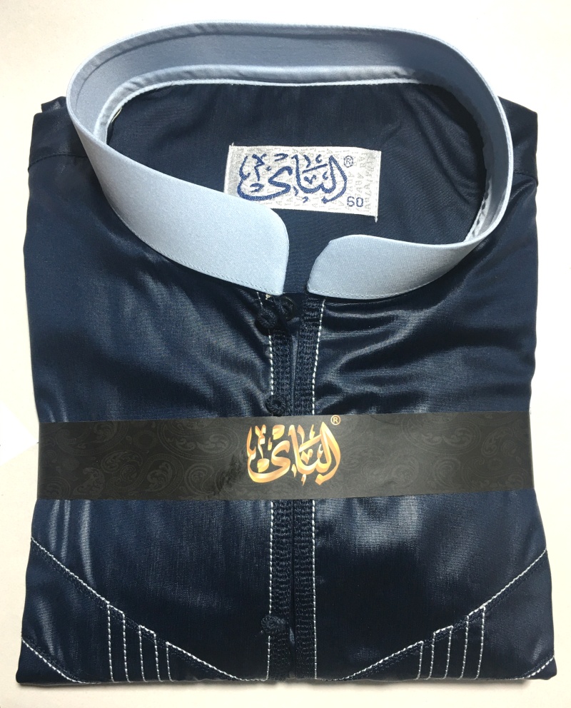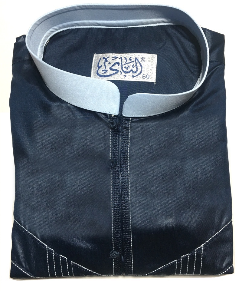 Qamis original de couleur bleu foncé bouton pression décorés (tissés). Tissu satiné.