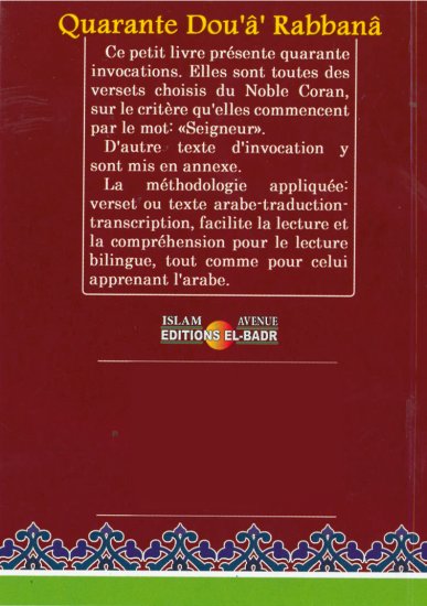 Ce petit livre présente quarante invocations. Elles sont toutes des versets choisis du Noble Coran, sur le critère qu'elles commencent par le mot : "Rabbanâ..." (Ô notre Seigneur...)