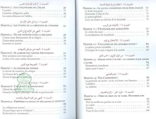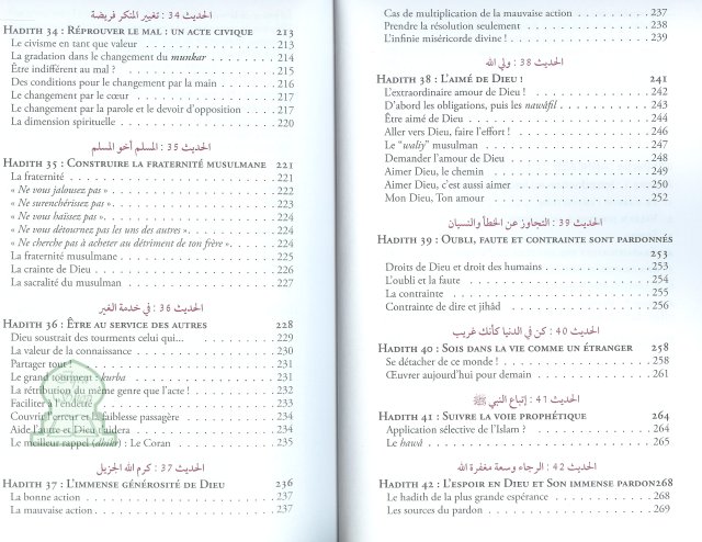 Les commentaires fournis sur chaque hadith permettent d’expliciter un peu plus cette vision globale de l’Islam afin de mieux comprendre cette religion pour ceux qui n’en connaissent que peu, mais aussi inciter et stimuler vers l’excellence et le mieux faire (ihsân) pour ceux qui aspirent à l’amour de Dieu.