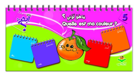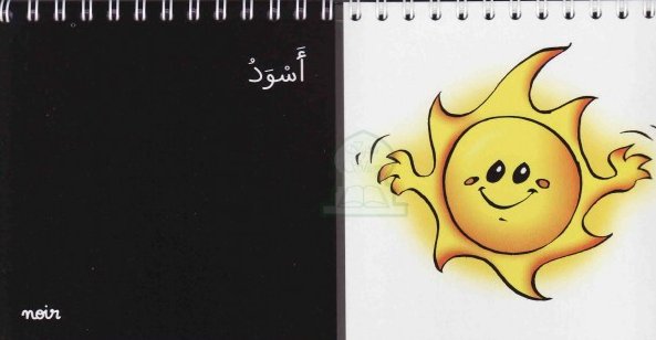 Imagier bilingue arabe - français à spirales découpé en cartes. Trouve la couleur du soleil, l'orange. Découvre ainsi les dix couleurs.