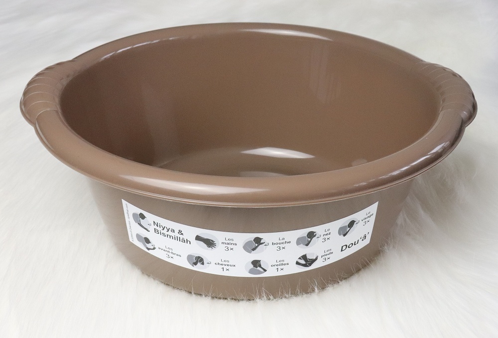 Récipient pédagogique pour faire l'ablution mineure (woudou) avec illustration des différentes étapes - Couleur Marron - REF. 35478 (3.90 €)