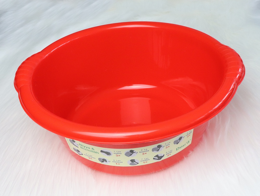 C'est le même type de récipient qu'on retrouve dans les salles d'ablution dans les mosquées. Sa forme est très adaptée pour faire les ablutions.