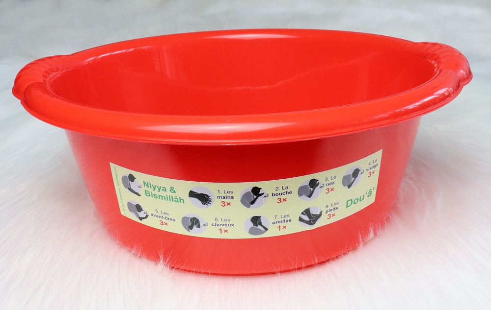 Très pratique et utilisable pour toute la famille (adulte et enfant) pour faire al-woudou' sans gaspillage d'eau.