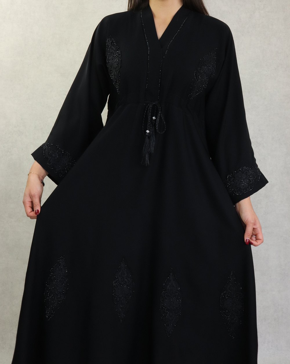 Robe Abaya Dubaï noire de qualité avec strass et diamants - REF. 38147 (45.00 €)