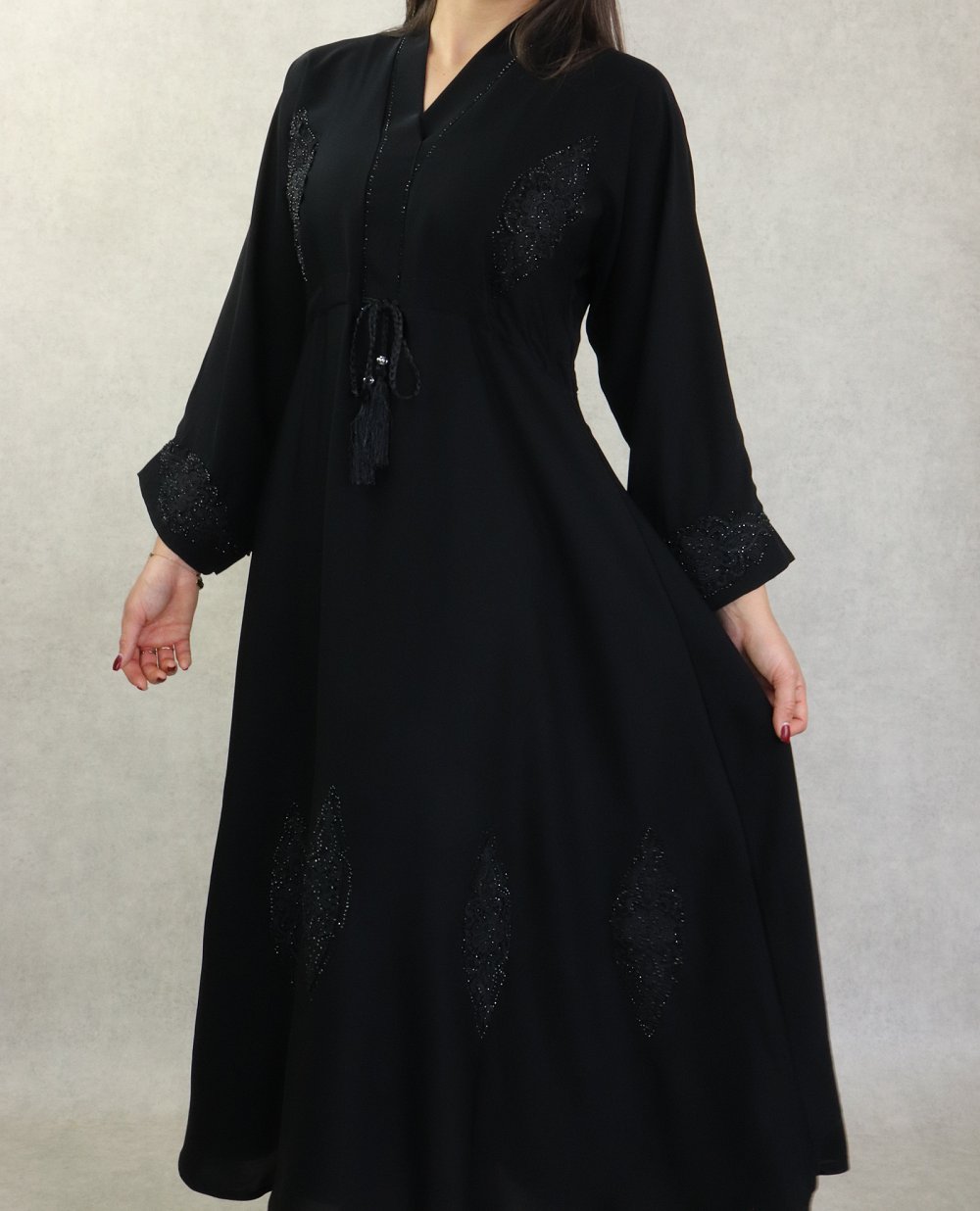Robe Abaya Dubaï noire de qualité avec perles noires et strass - REF. 38143 (39.90 €)