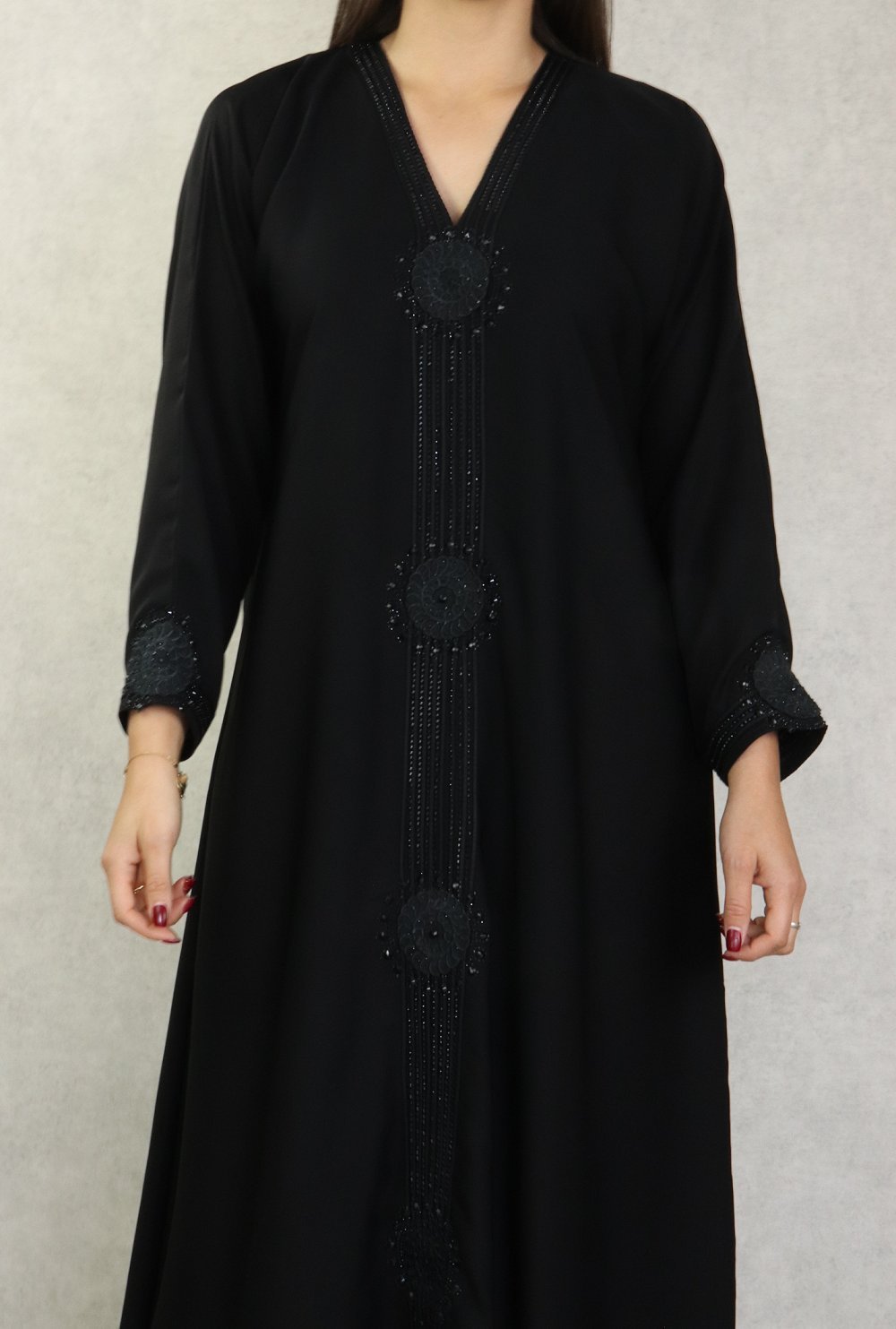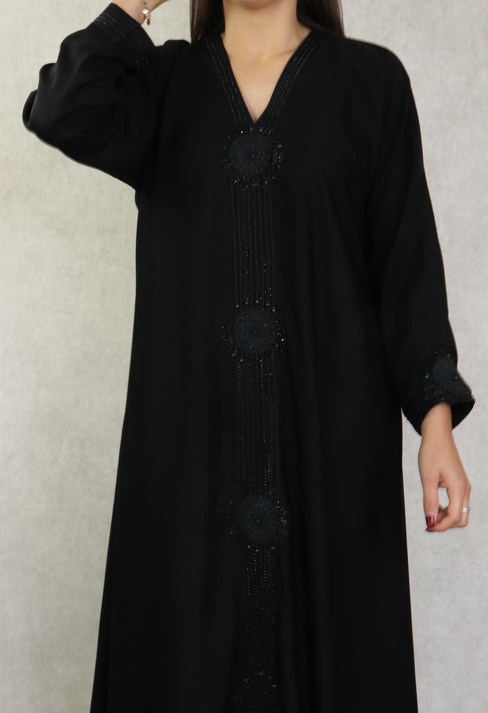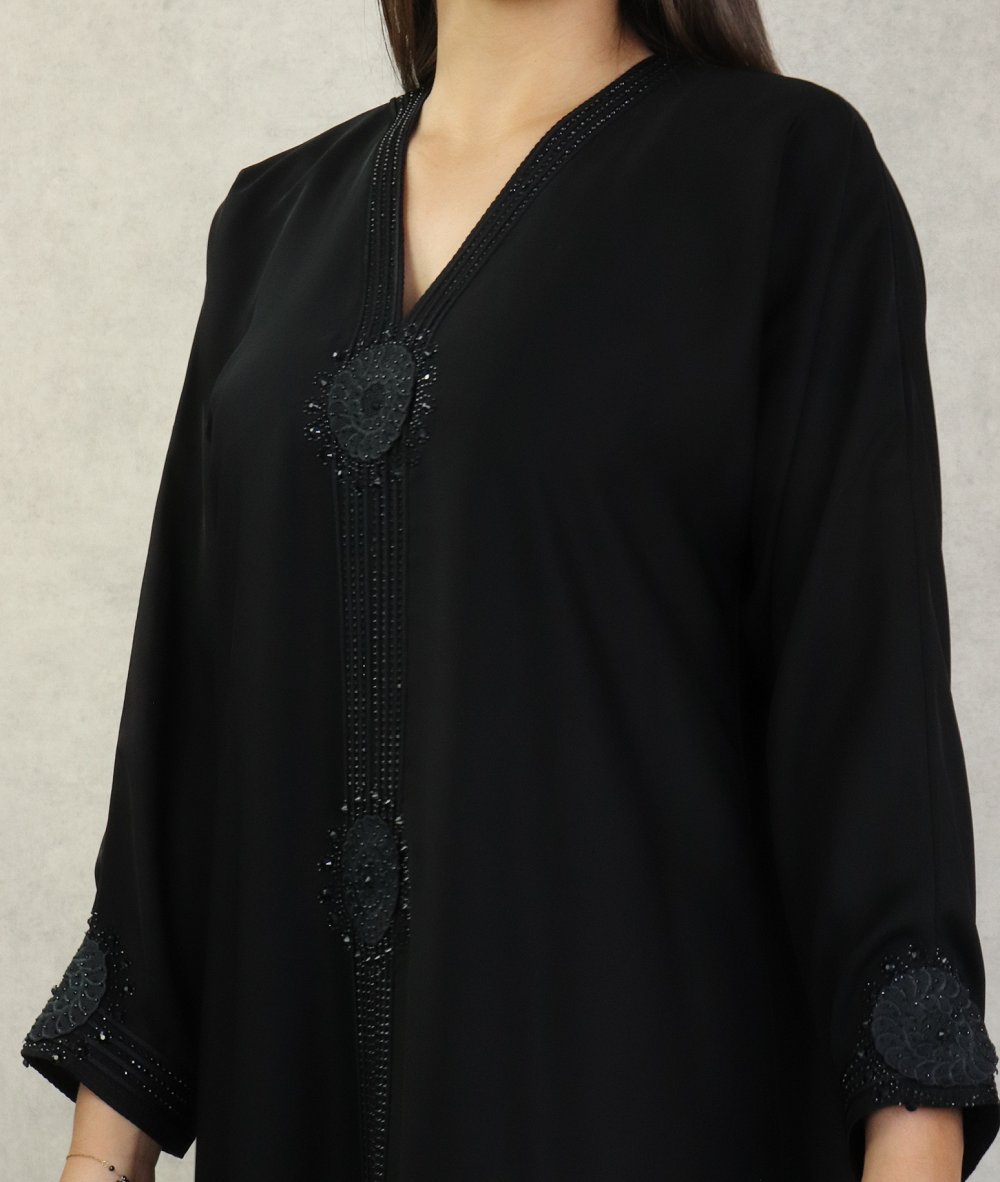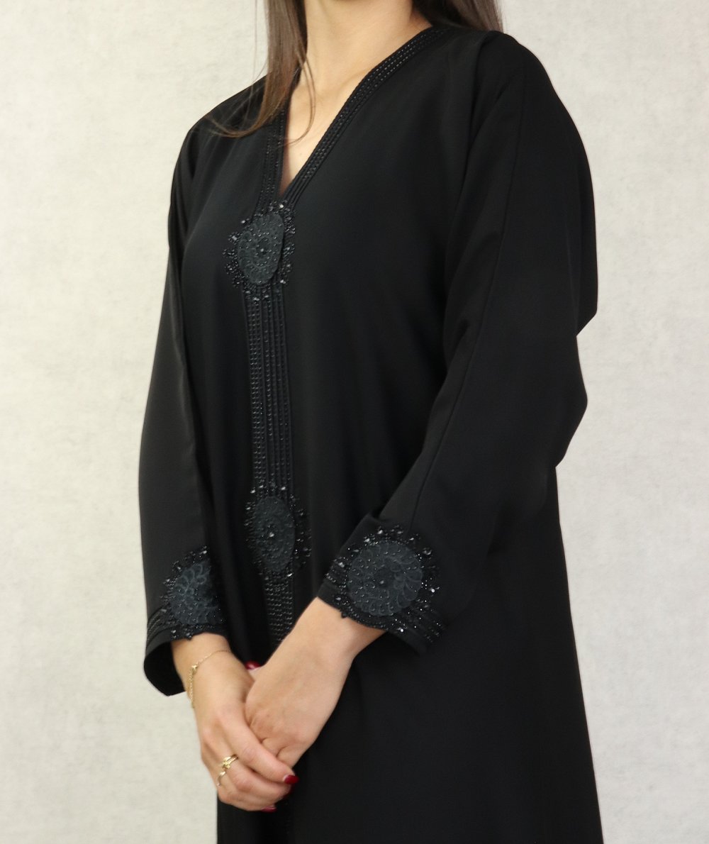Robe Abaya Dubaï noire de qualité avec nombreuses perles noires et strass - REF. 38118 (45.00 €)