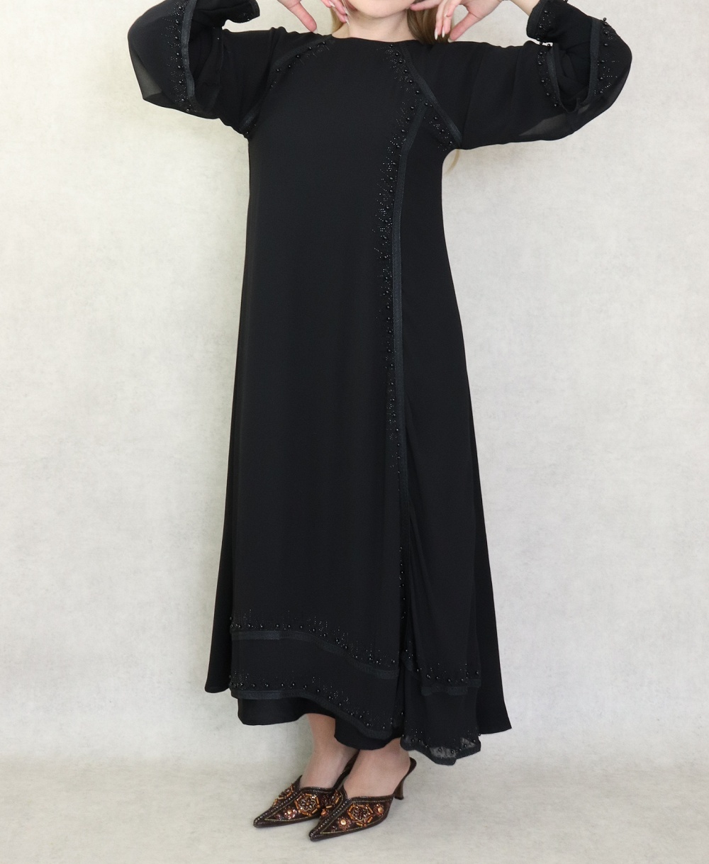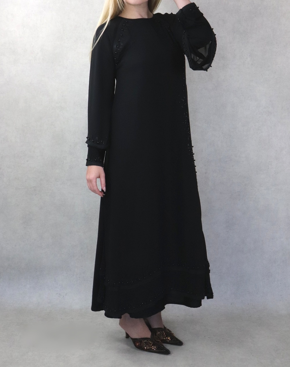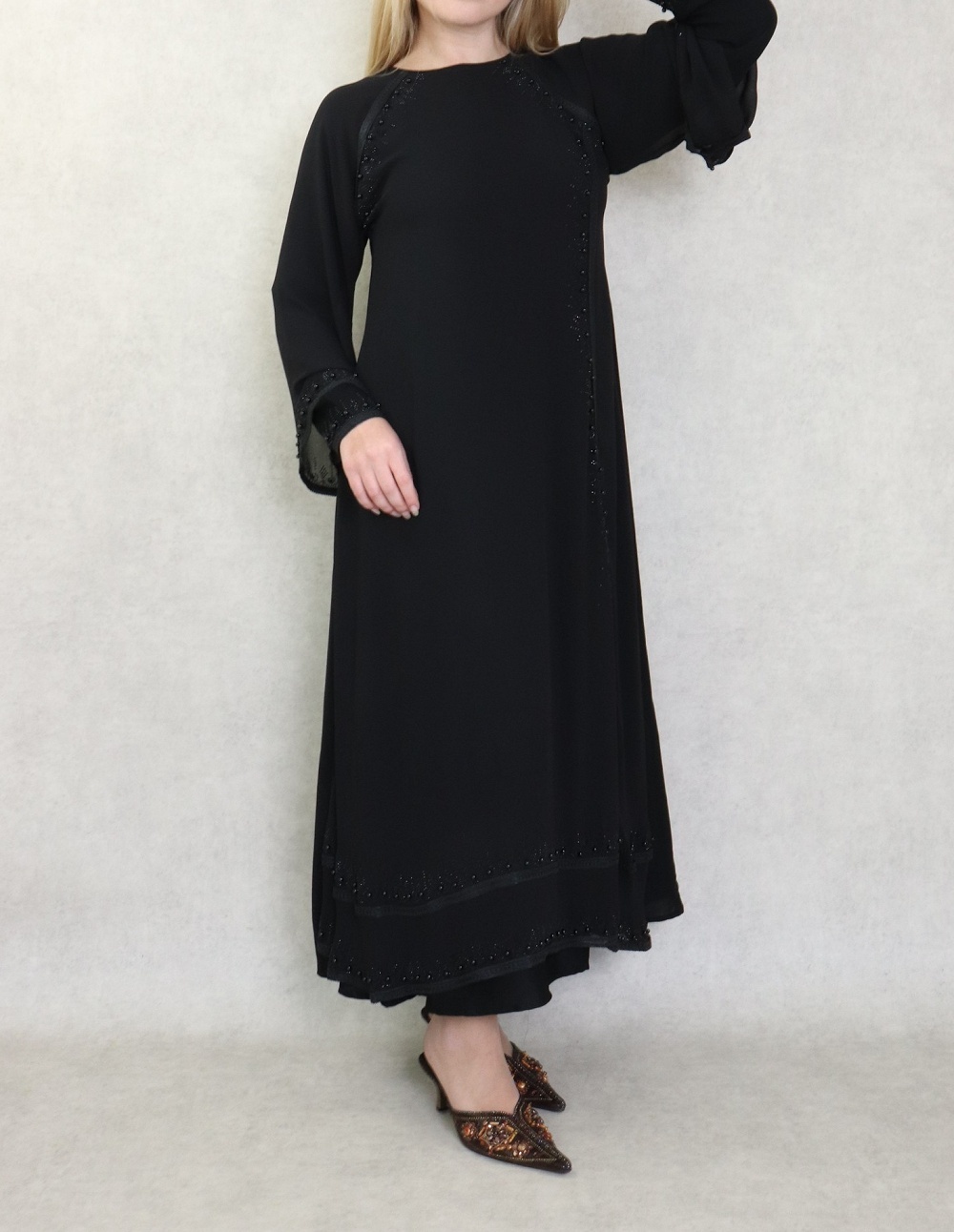 Robe Abaya Dubaï noire de qualité avec nombreuses perles noires et strass - REF. 38118 (45.00 €)