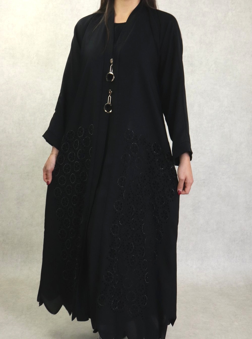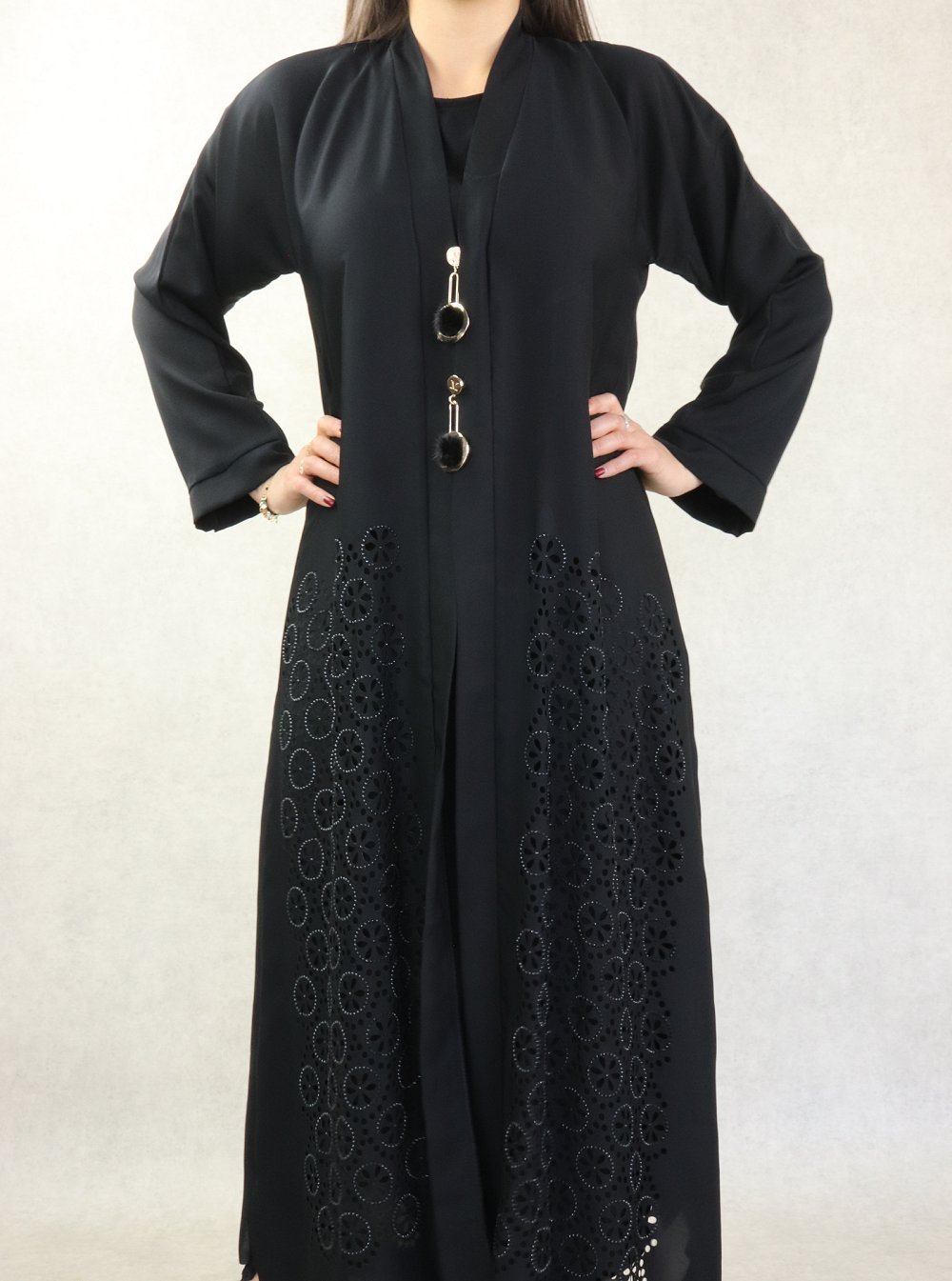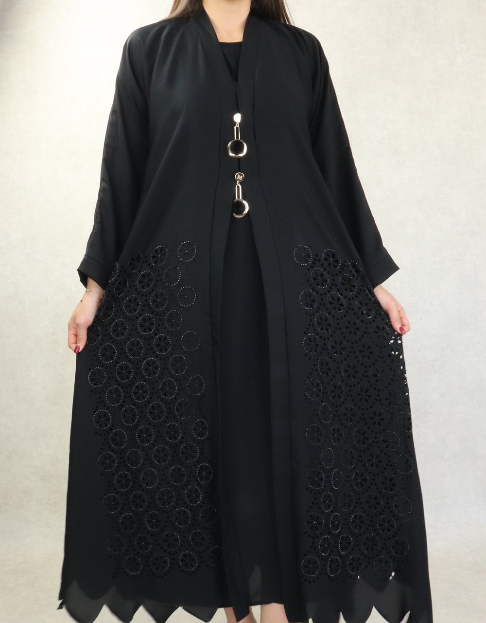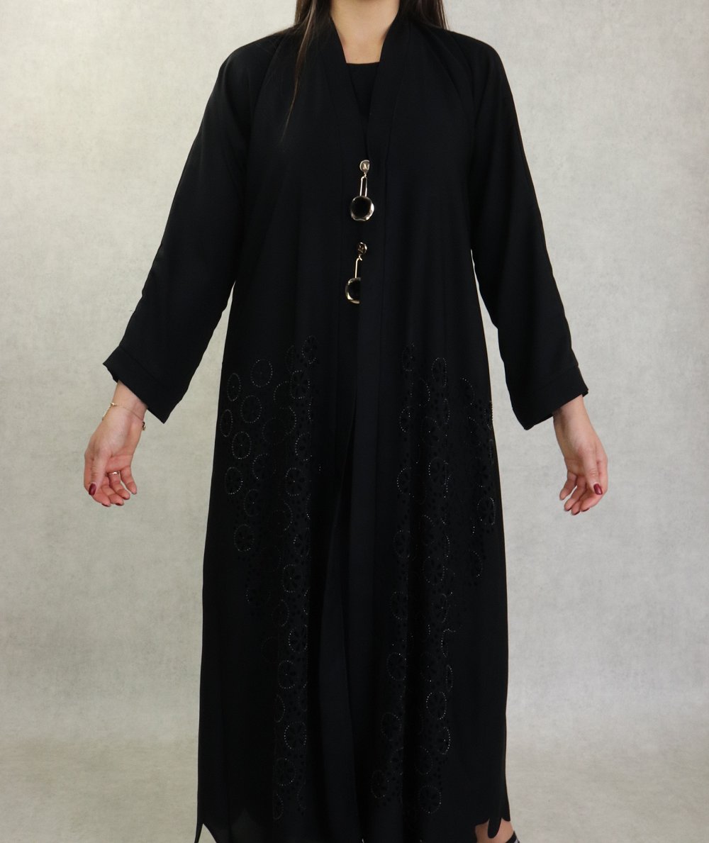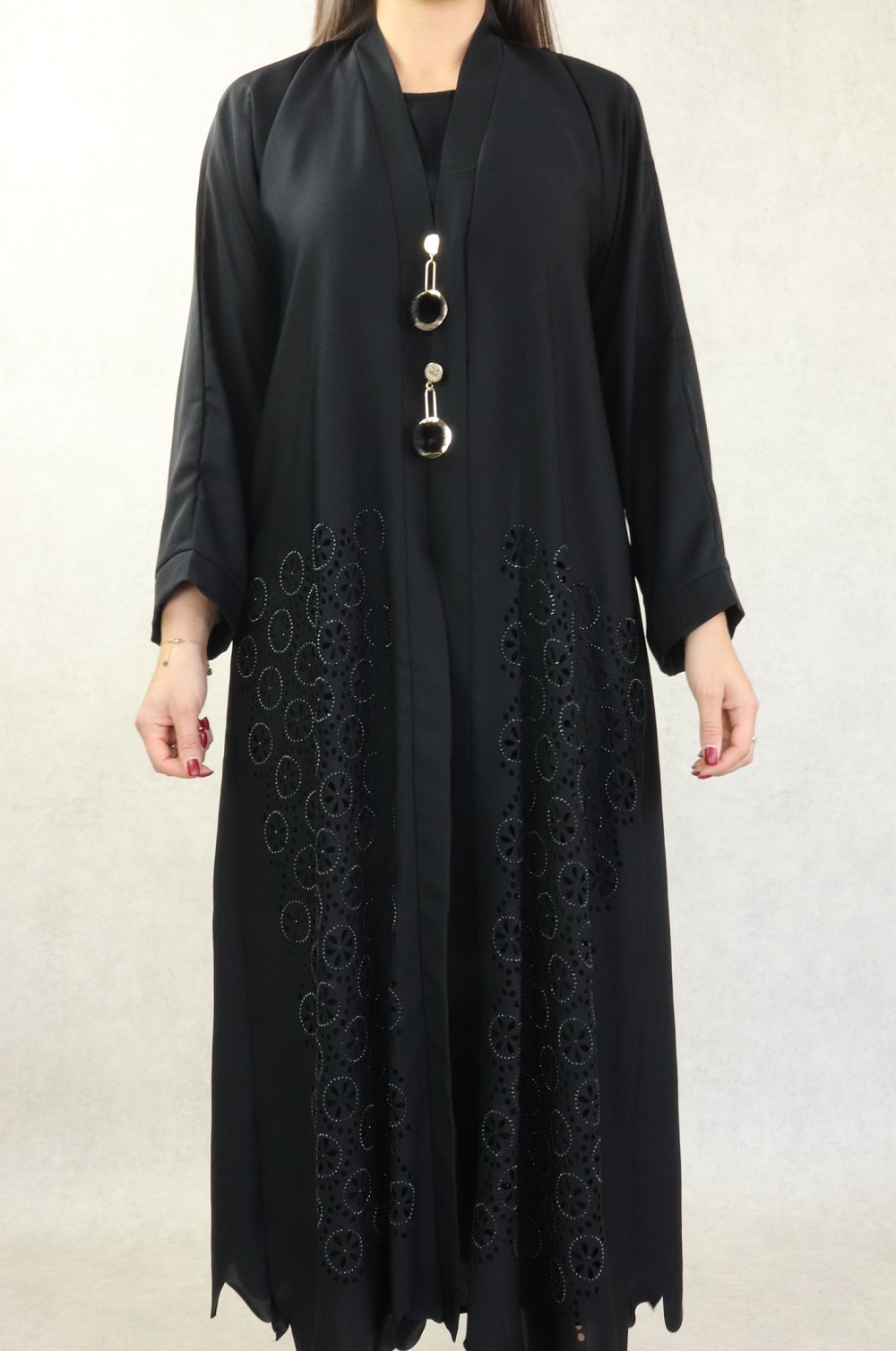 Robe Abaya Dubaï noire de qualité avec broderie et strass - REF. 38187 (39.90 €)