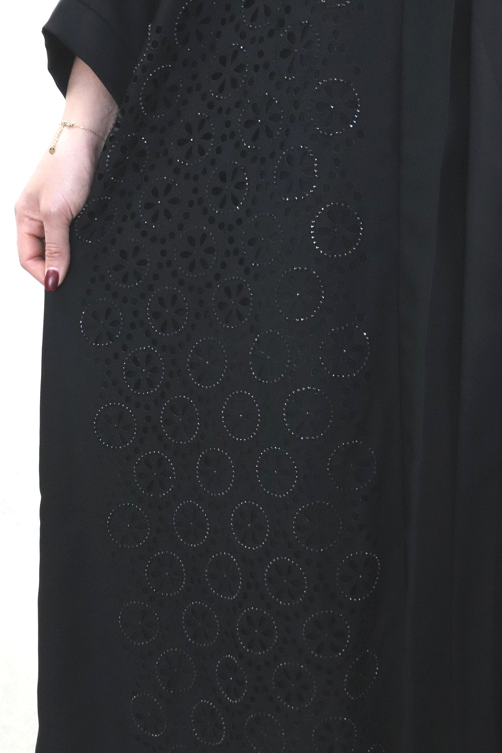 Robe Abaya ample Dubaï noire de qualité avec nombreuses broderies et strass idéale pour la fête de l'Aïd - REF. 38121 (45.00 €)