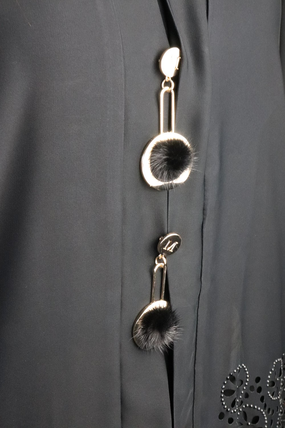 Robe de soirée Abaya Dubaï de qualité avec pompons, strass dorés et broderies - Couleur noir - REF. 38178 (45.00 €)