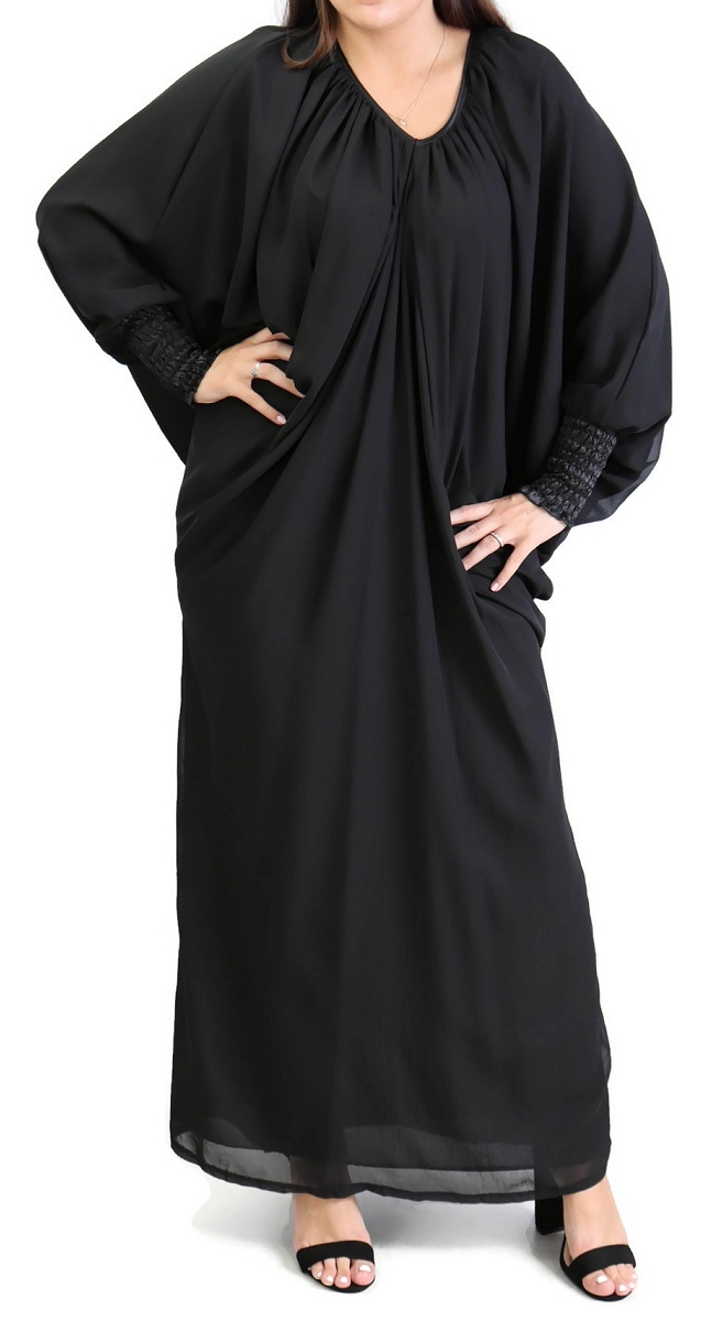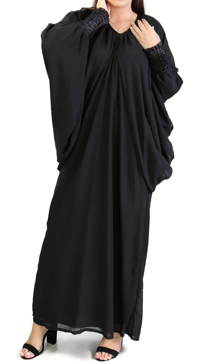 Robe Abaya modele papillon pour femme - Taille standard - Couleur Noir