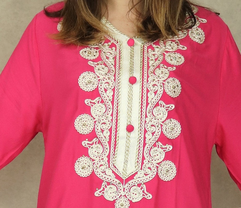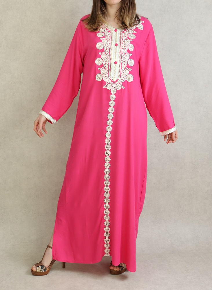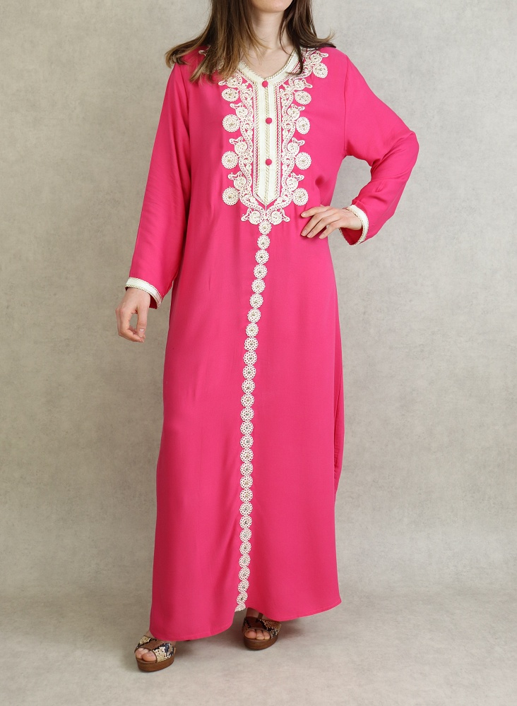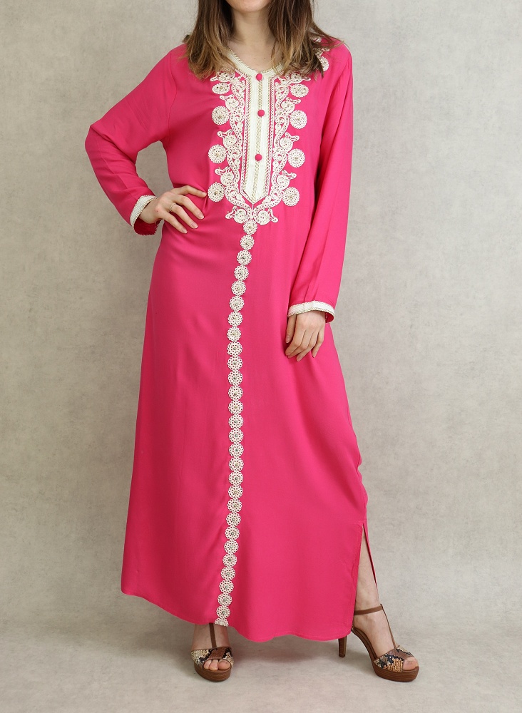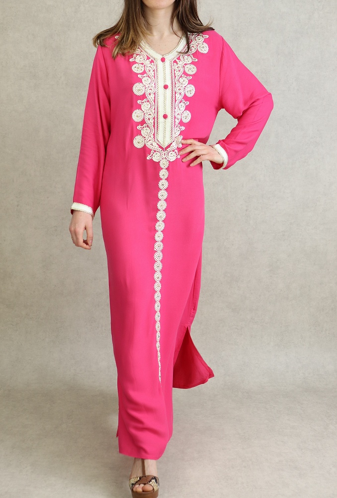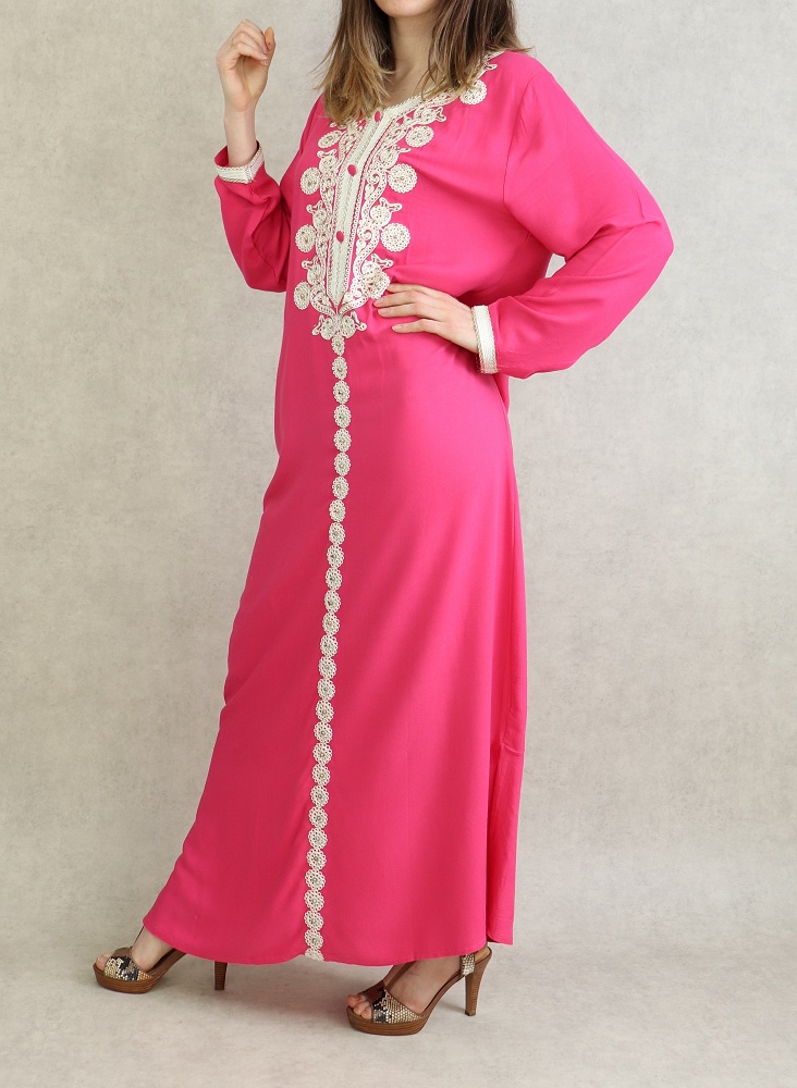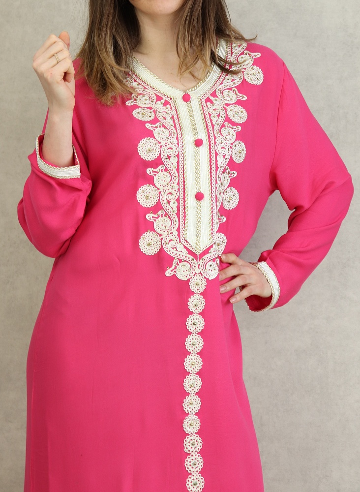 Robe Algérienne longue avec broderie et strass style caftan - Couleur Rose Vetement & Accessoire