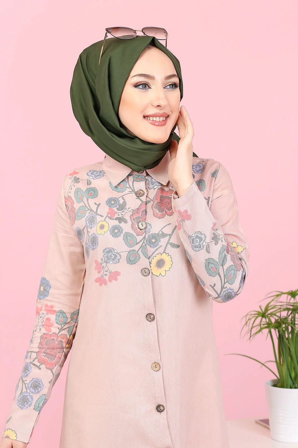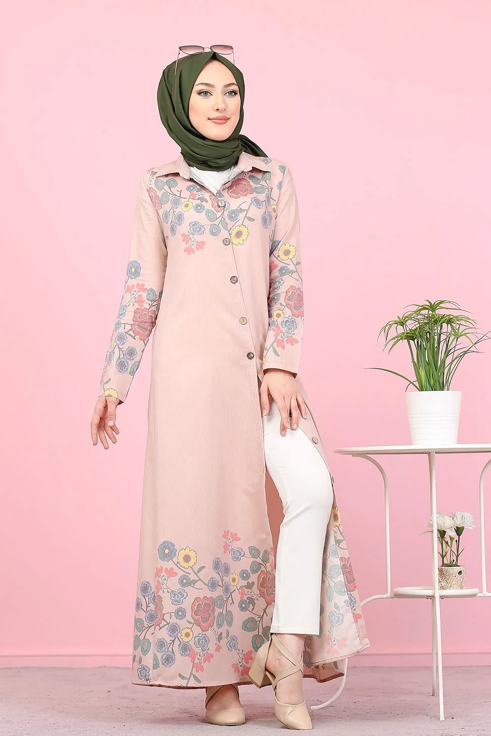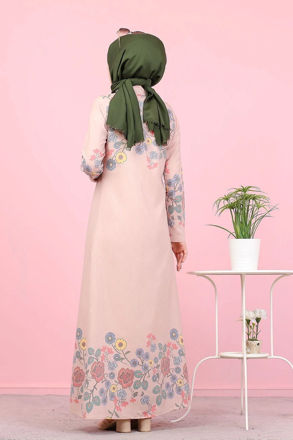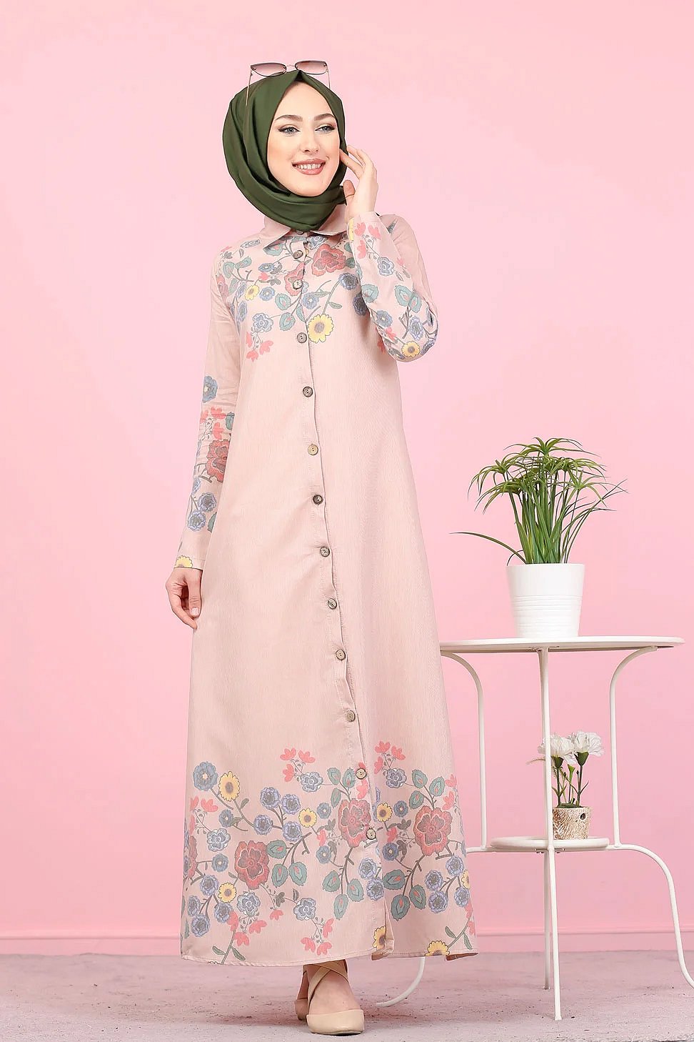 Robe-Chemise longue à fleurs pour femme (Vetement Hijab France) - Couleur rose poudré Vetement & Accessoire