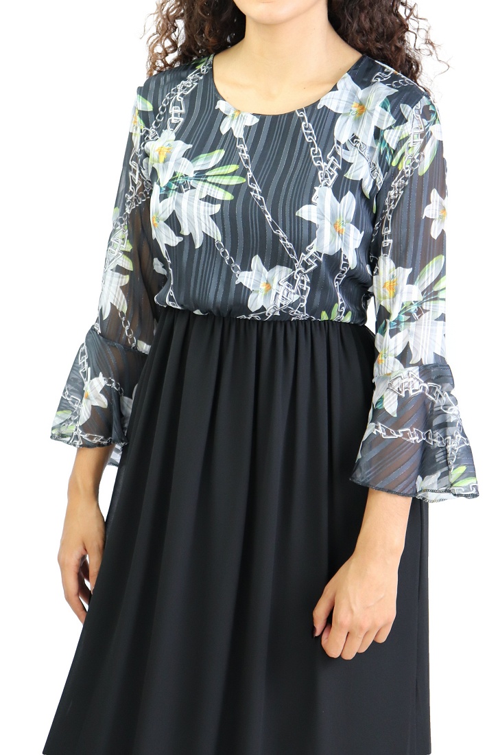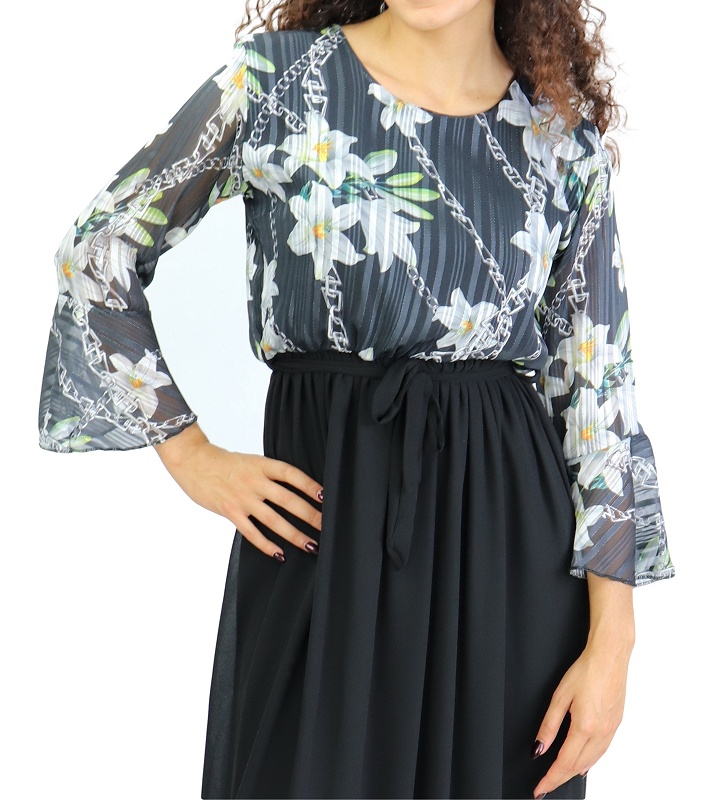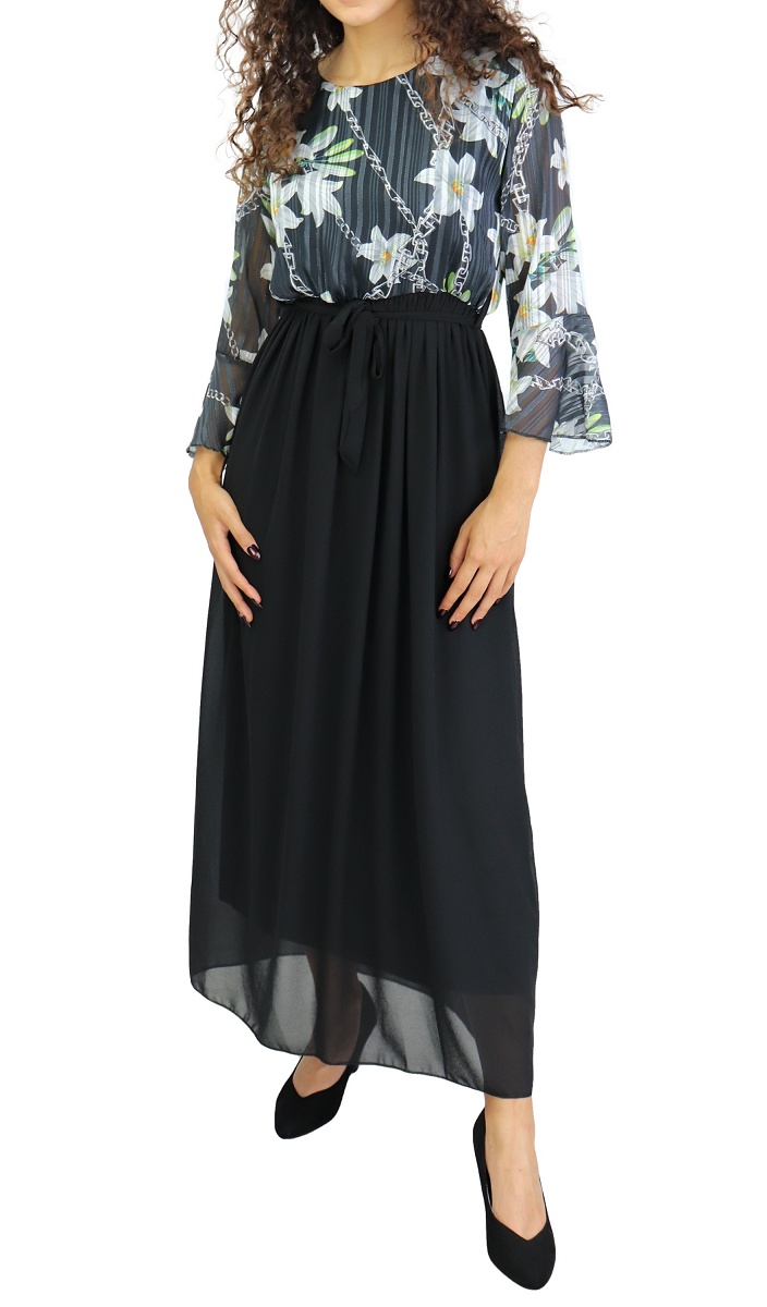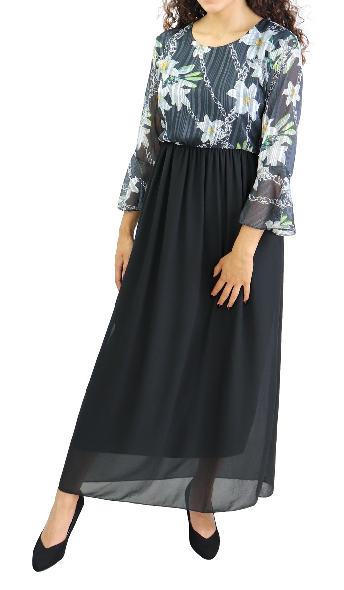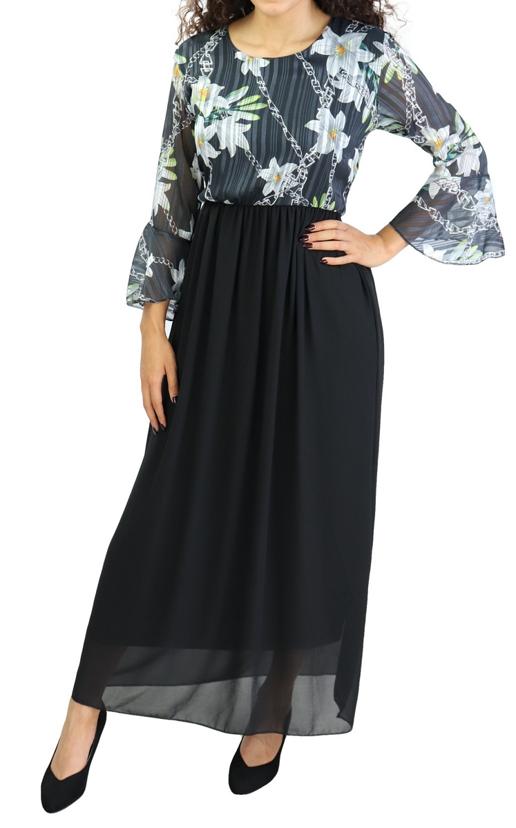 Robe brodée avec motifs fleurs (Vetement classique femme voilée) - Couleur noir - REF. 37079 (26.90 €)