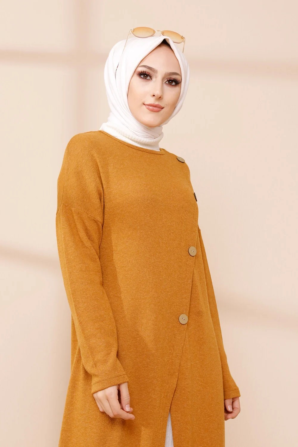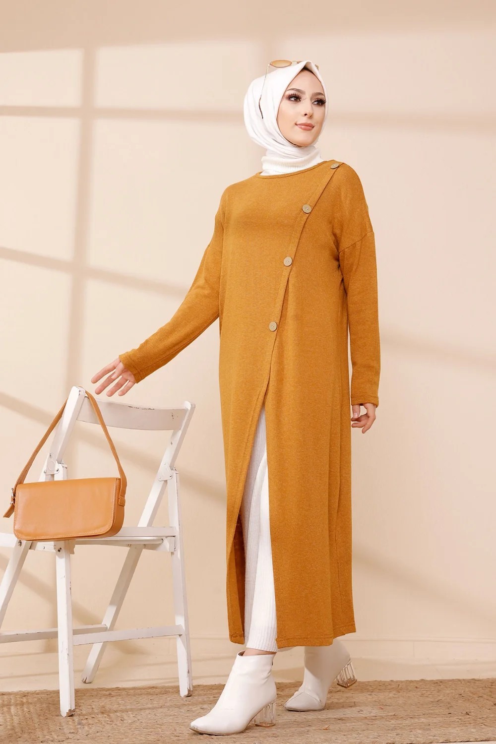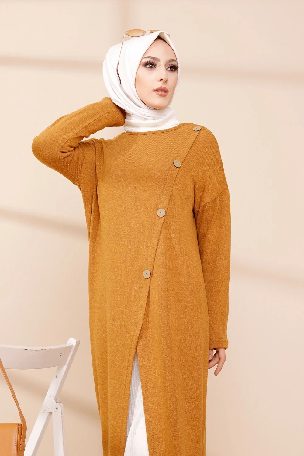 Robe Gilet pour femme (Tenue Hijab Chic Saison Automne-Hiver) - Couleur moutarde Vetement & Accessoire