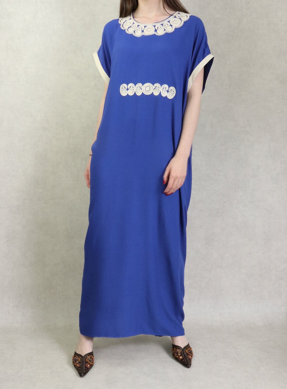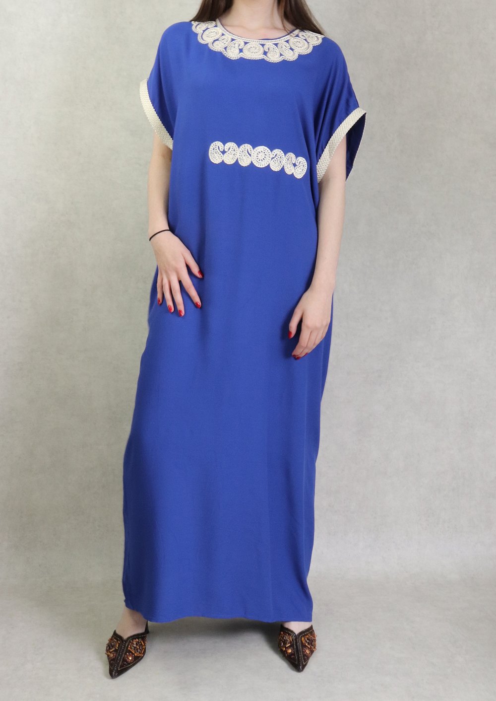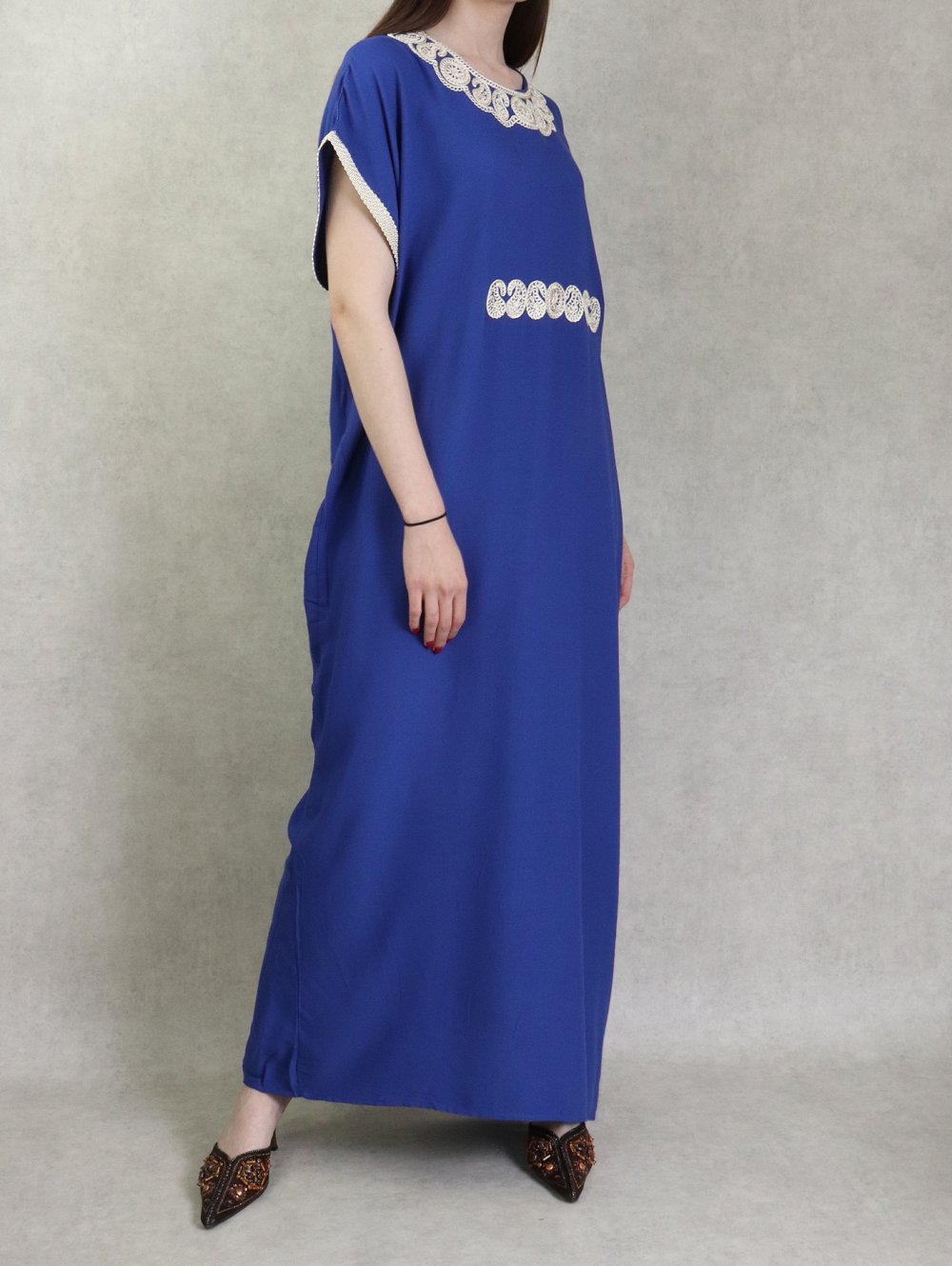 Robe Orientale élégante manches courtes tissu doux avec broderies pour femme - Couleur Bleu roi Vetement & Accessoire