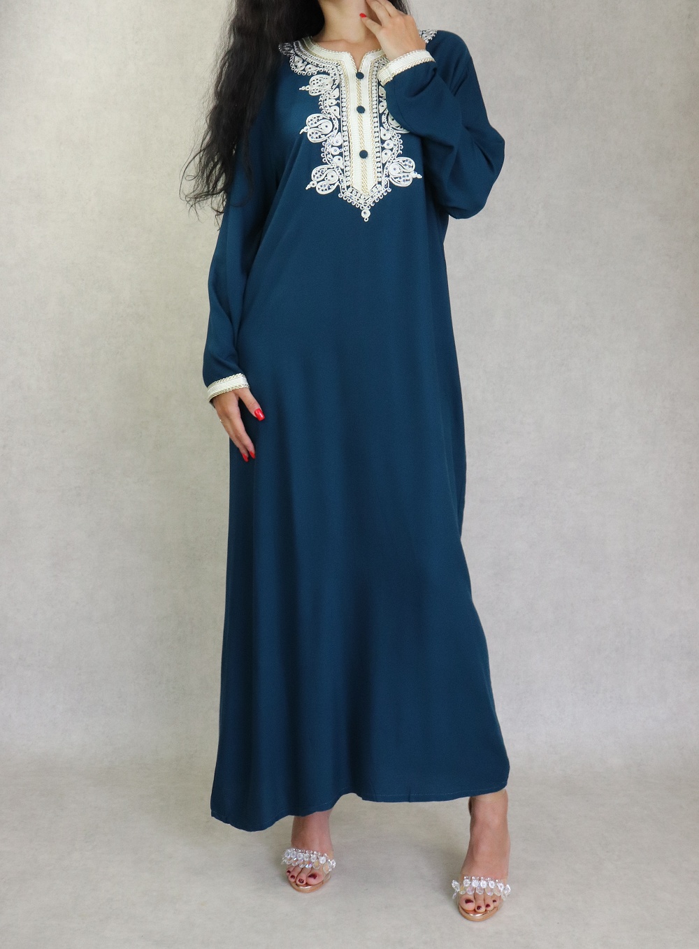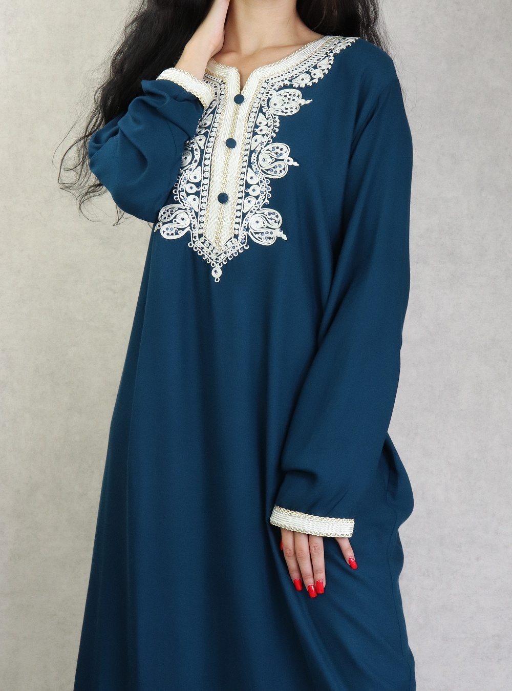 Robe orientale longue avec broderies - Manches longues - Couleur Bleu turquoi - REF. 33331 (25.00 €)