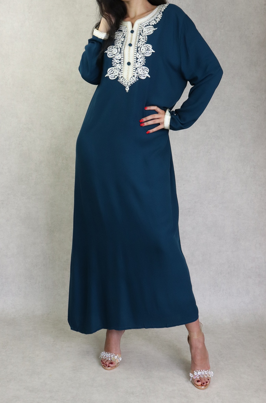 Robe Orientale pour femme avec broderies et strass - Couleur bleu pétrole Vetement & Accessoire