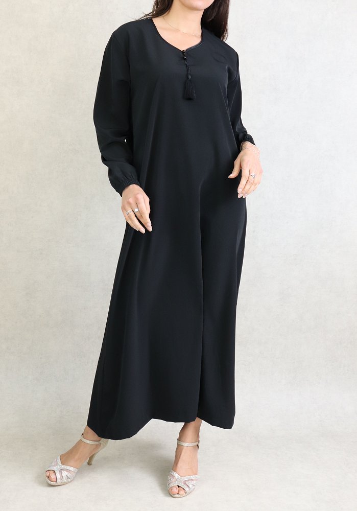 Robe orientale Abaya simple de la marque Al-Haya. Couleur unie, opaque, très beau tombé avec sa coupe évasée et sa fluidité qui lui donne de l’élégance. Belle qualité de tissu.