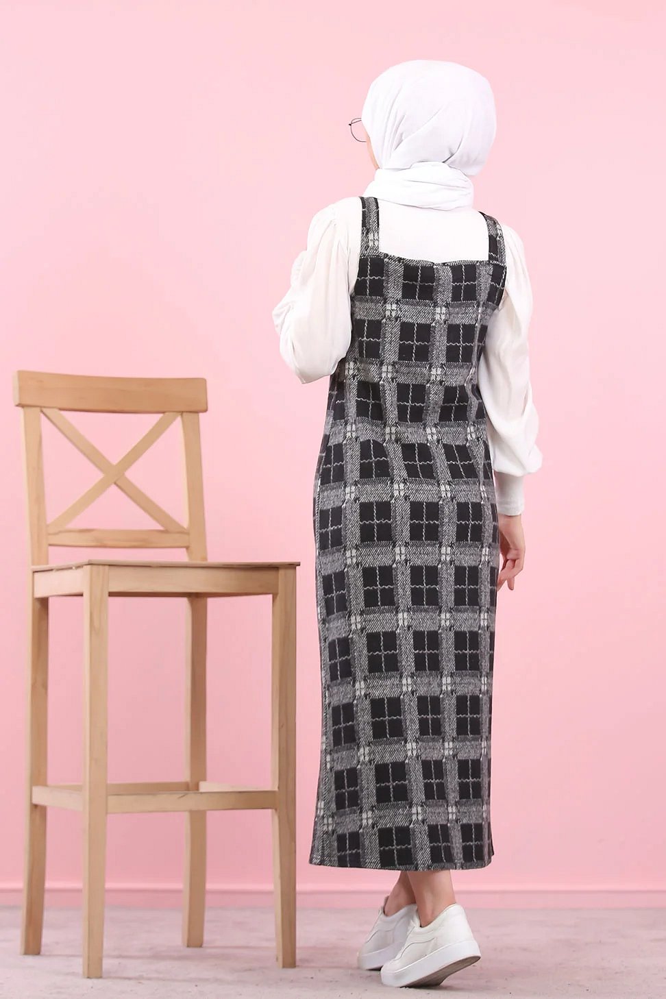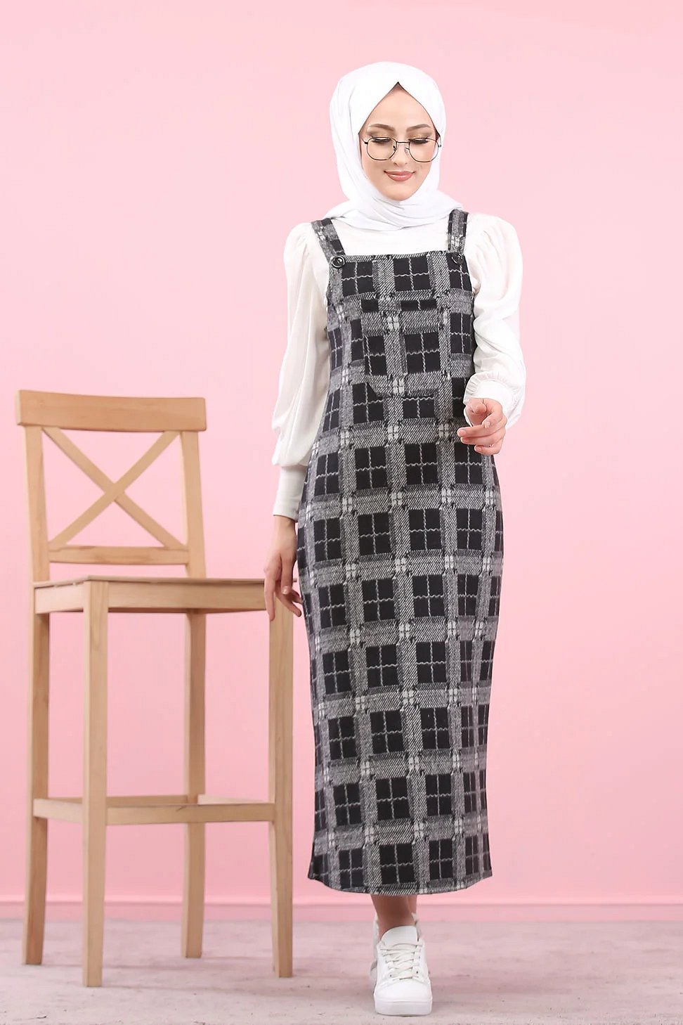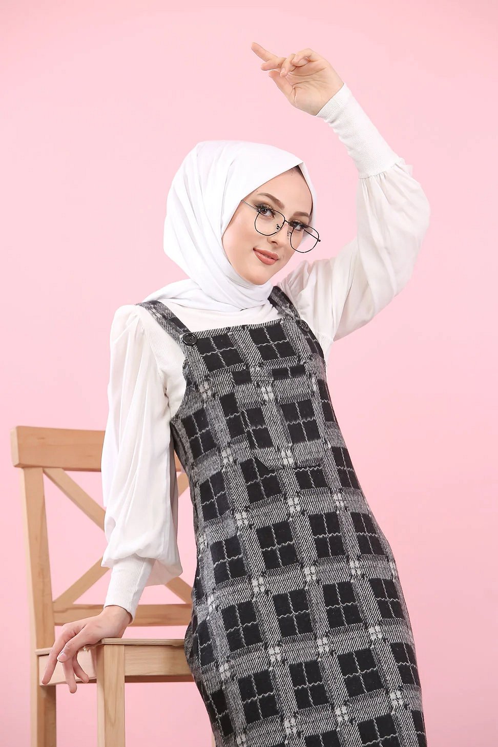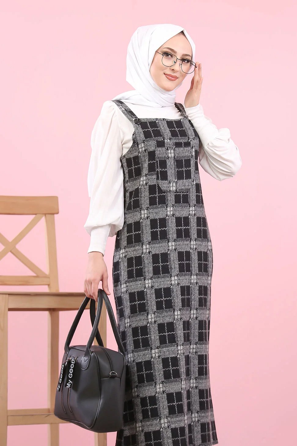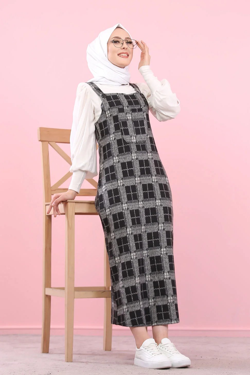 Robe Salopette à carreaux au look Muslima Hijab Fashion - Couleur noir et blanc Vetement & Accessoire