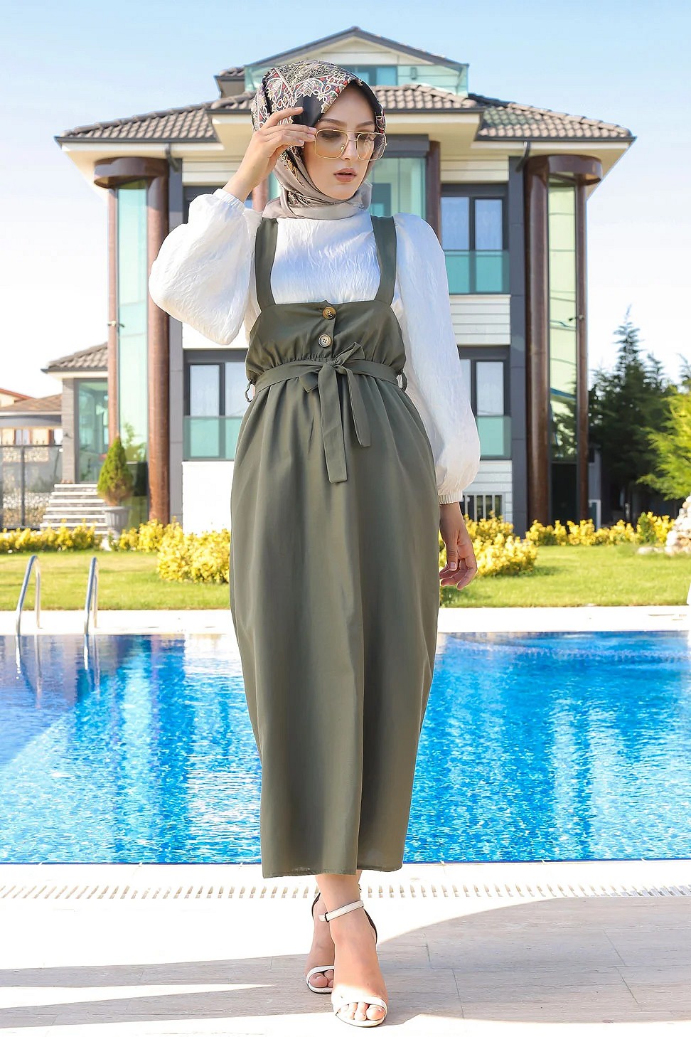 Robe Salopette avec ceinture pour femme - Couleur kaki