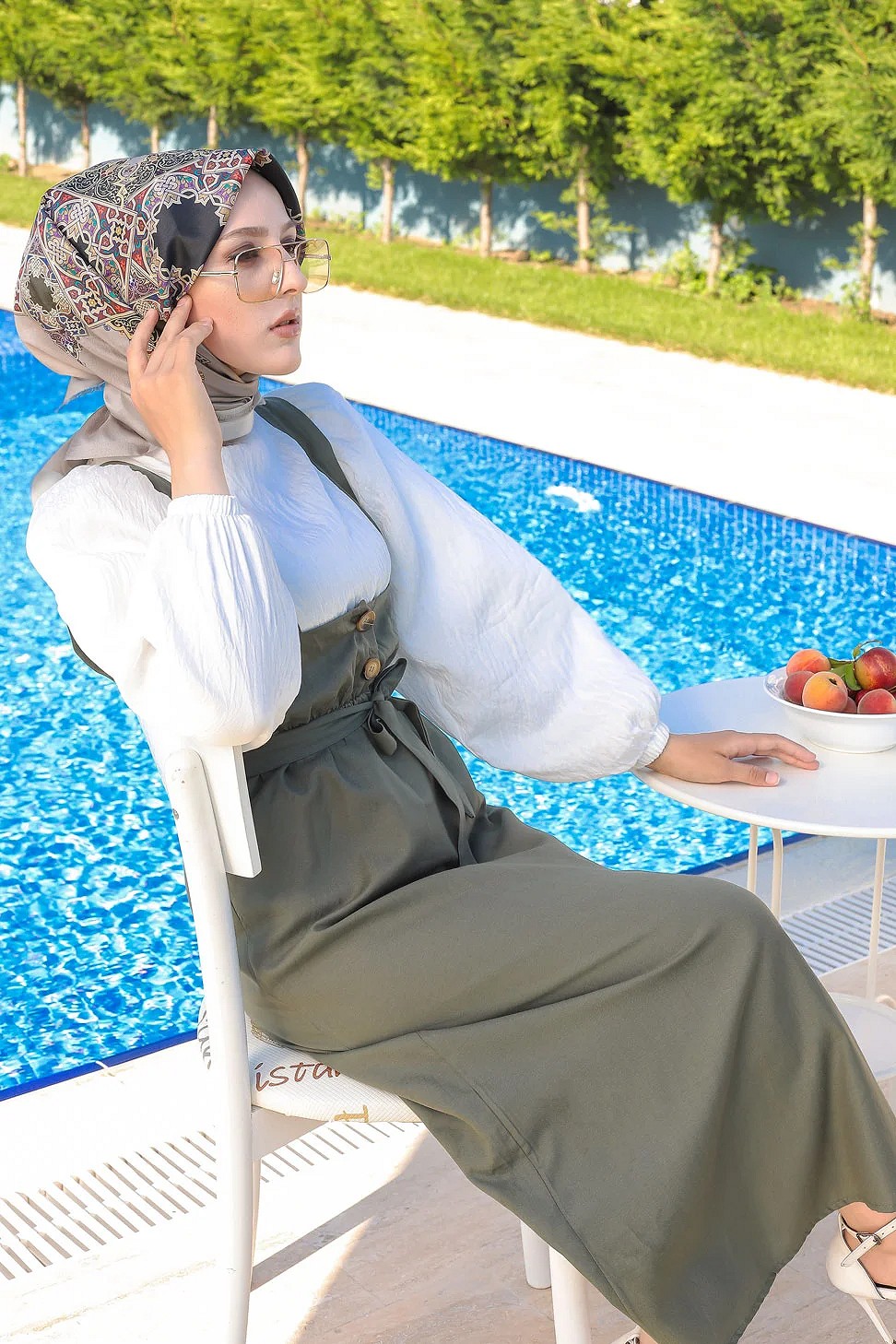 Robe longue fleurie sur un fond de couleur Kaki pour femme voilée (Boutique en ligne Modeste fashion France) - REF. 33091 (24.90 €) - En Promotion à 21.90 €