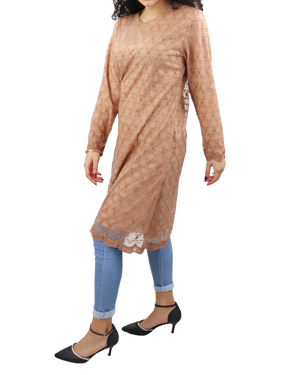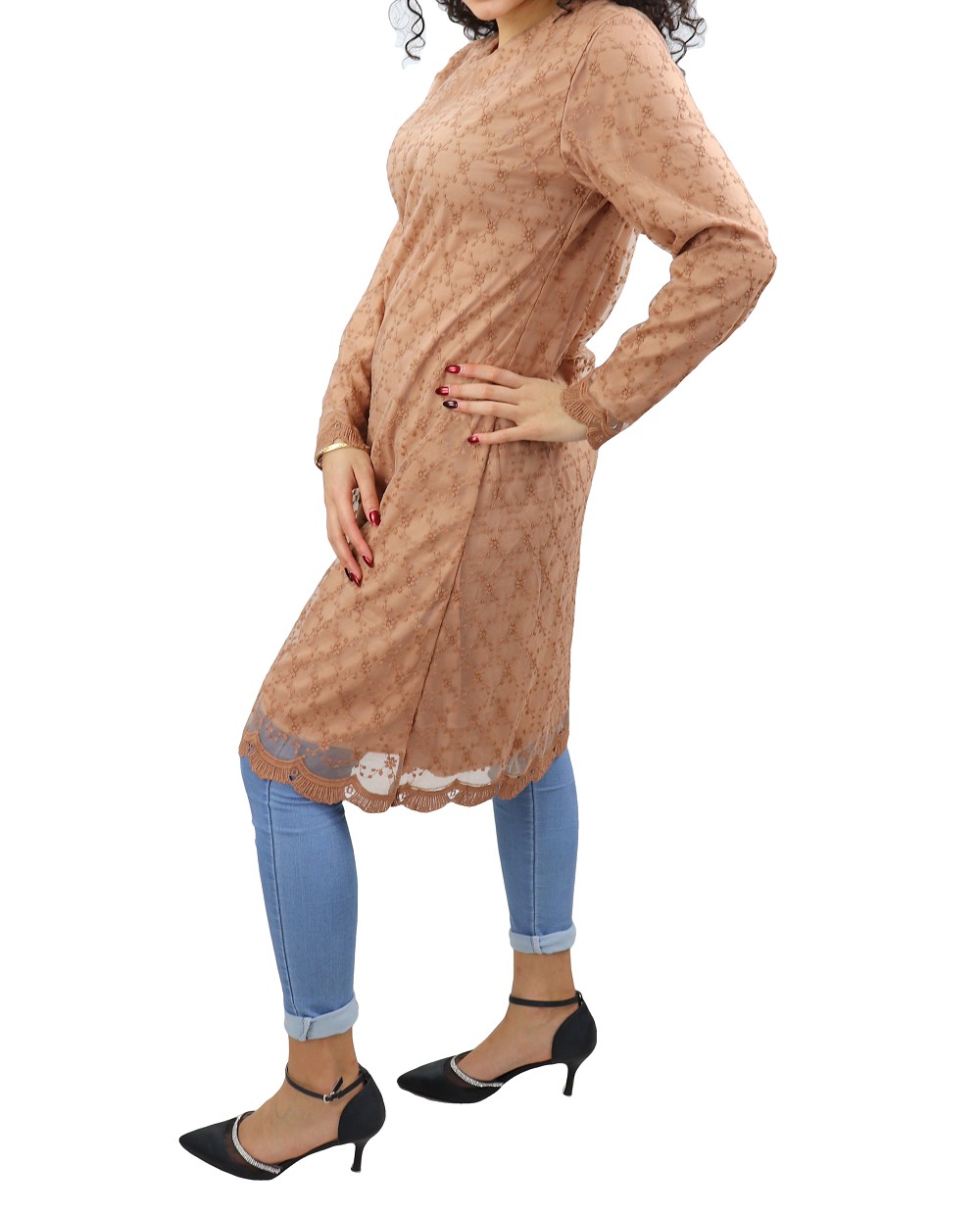 Robe-Tunique à dentelles doublée pour femme - Couleur Camel Vetement & Accessoire