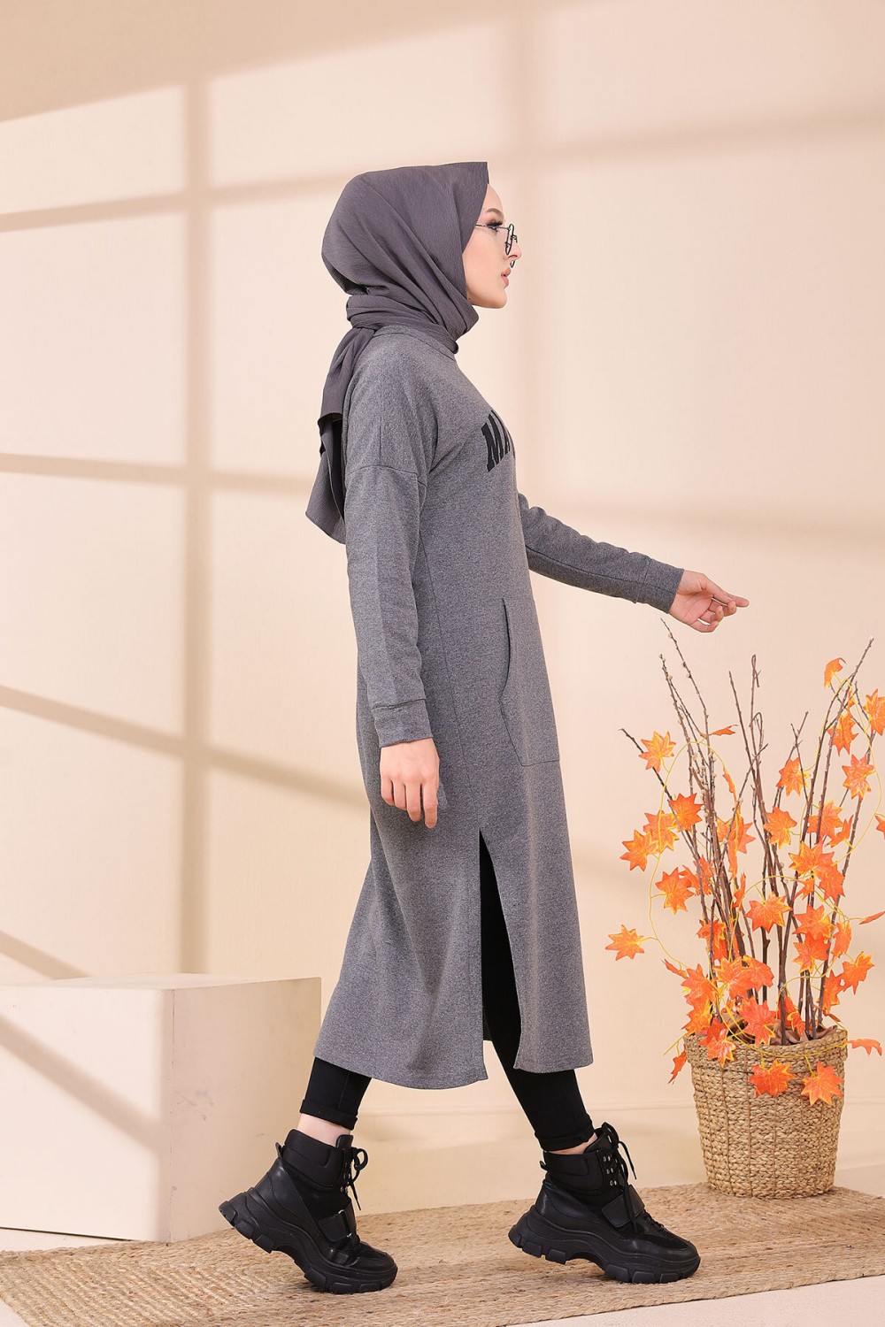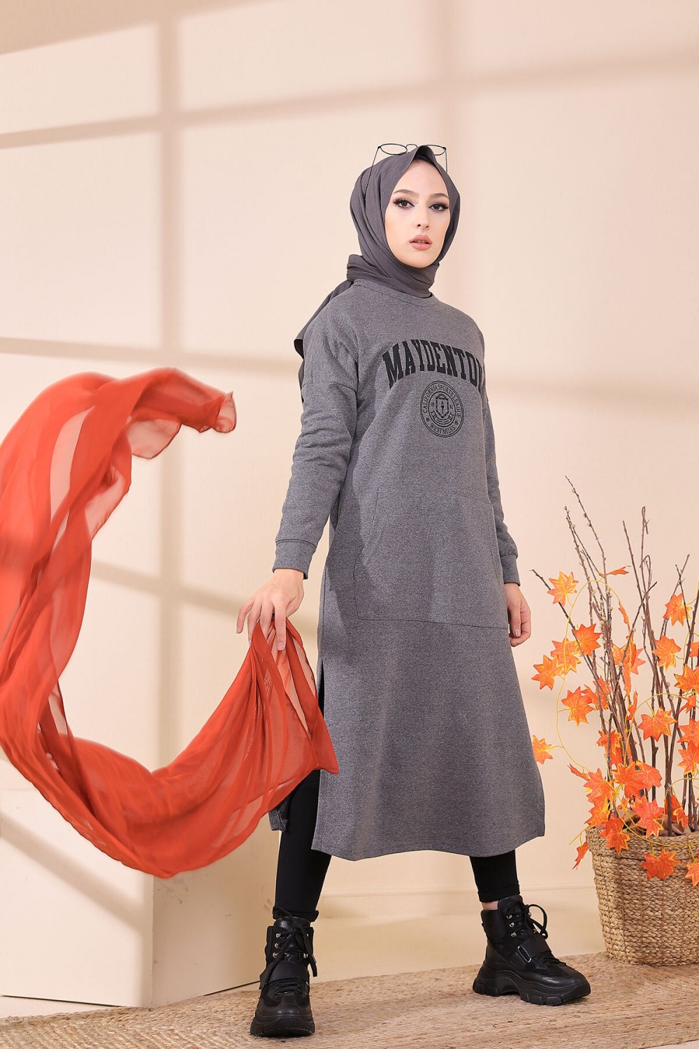 Tunique imprimée avec grandes poches style sweat-shirt.