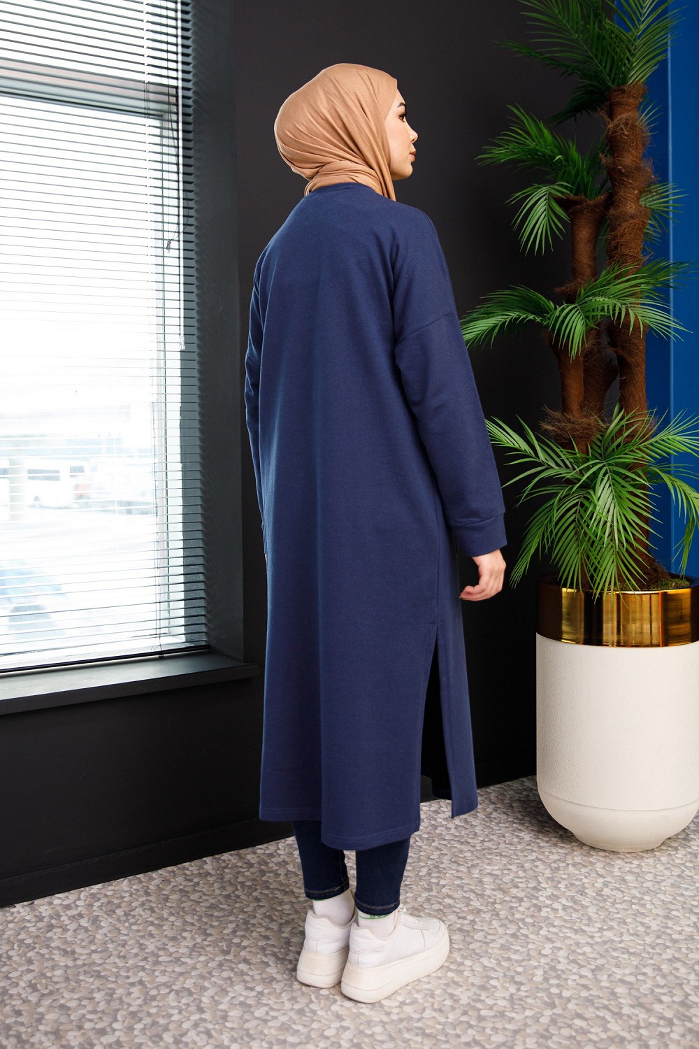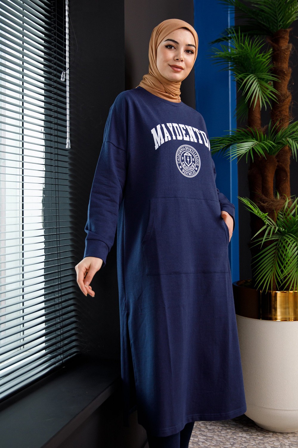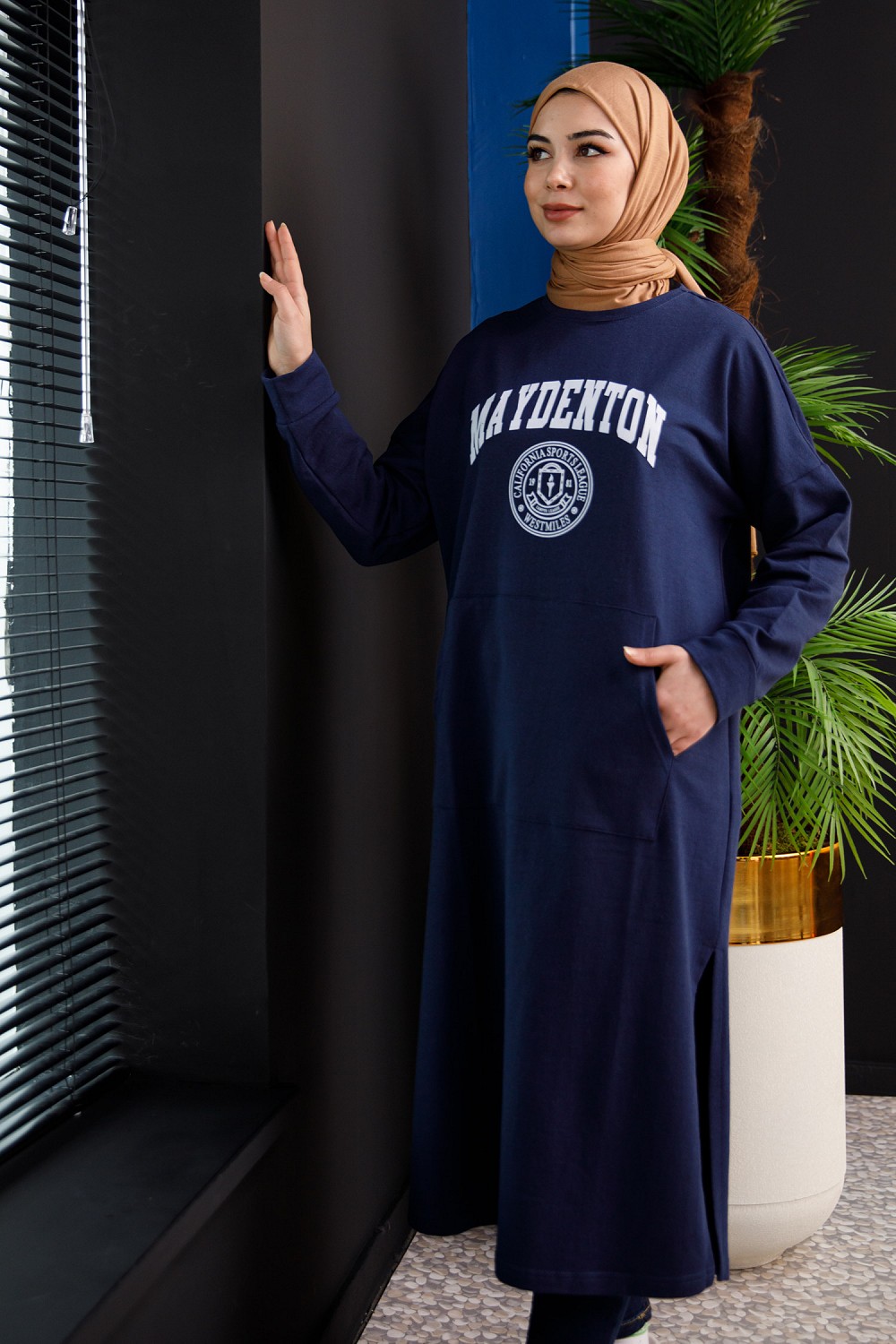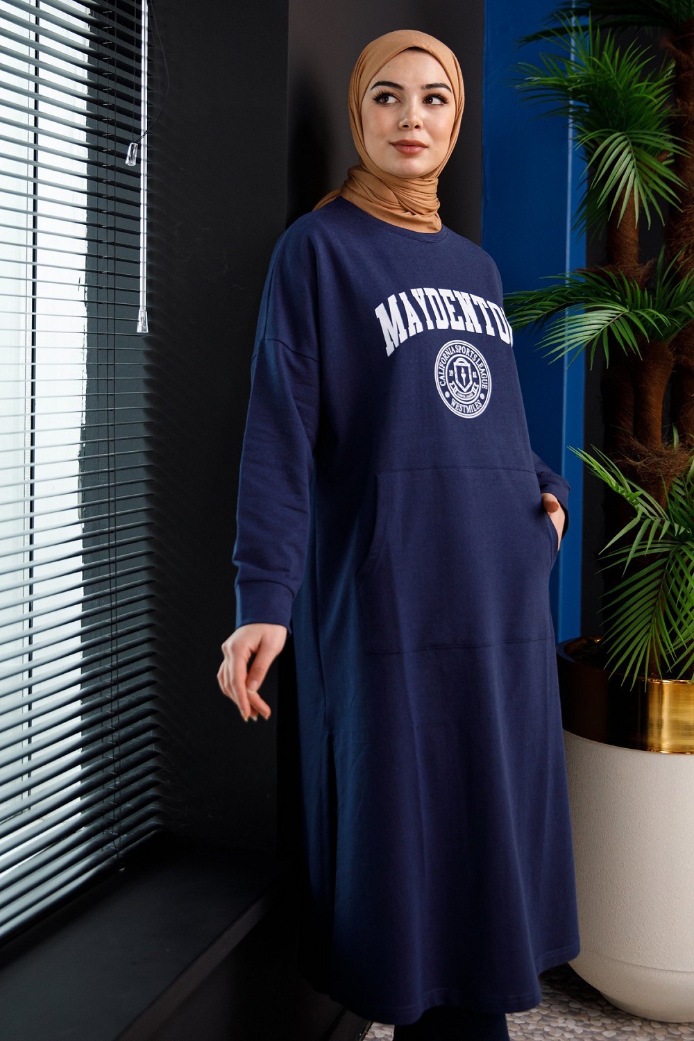 Tunique imprimée avec grandes poches style sweat-shirt.